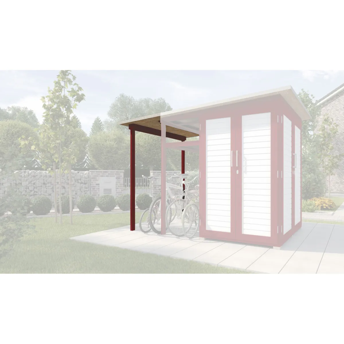 Garten (Q) Modul Family schwedenrot/weiß – Der ideale Dachanbau für Ihr Gartenhaus