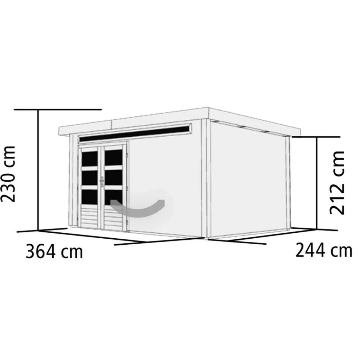 Gartenhaus-Set Kandem 7 mit Anbaudach 2,95 m mit Seiten- und Rückwand naturbelassen*Karibu Sale