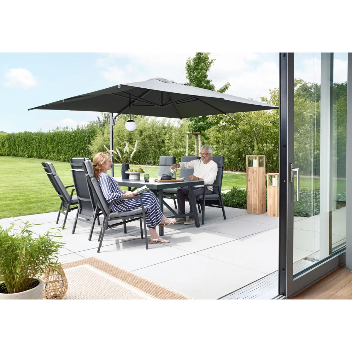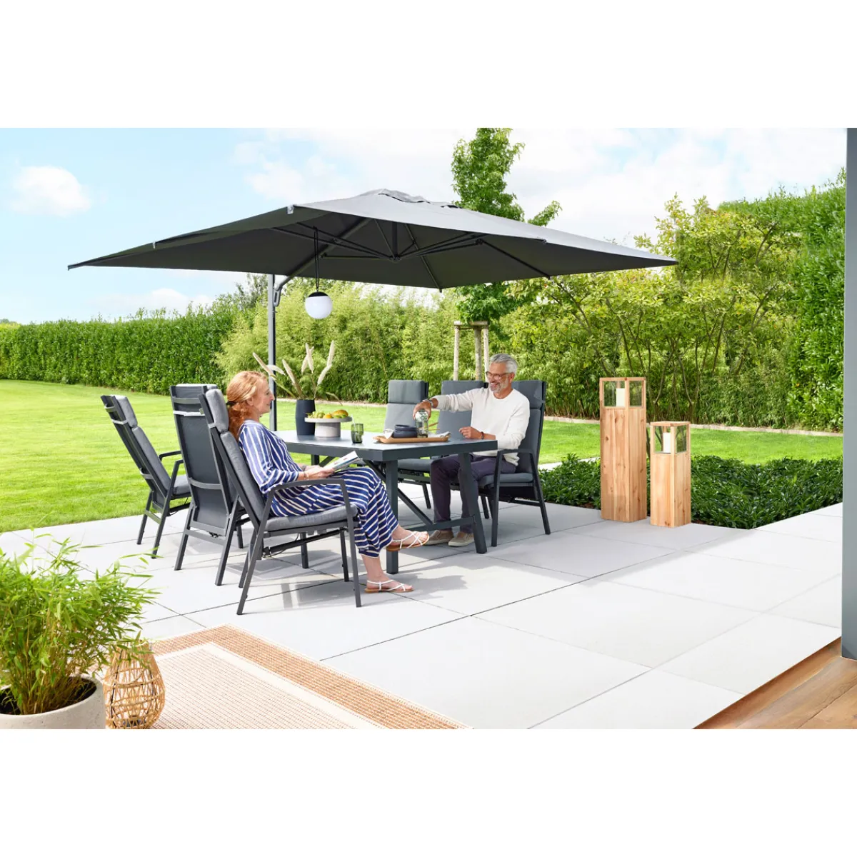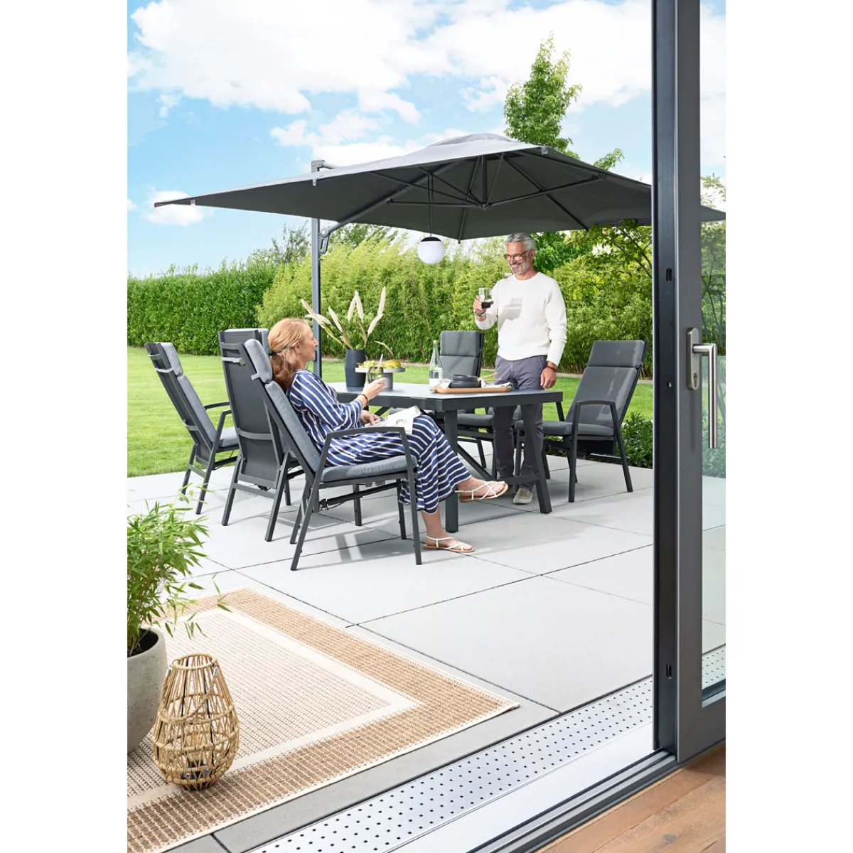 - Pulverbeschichtetes Aluminiumgestell sorgt für Stabilität und Langlebigkeit bei jedem Wetter.