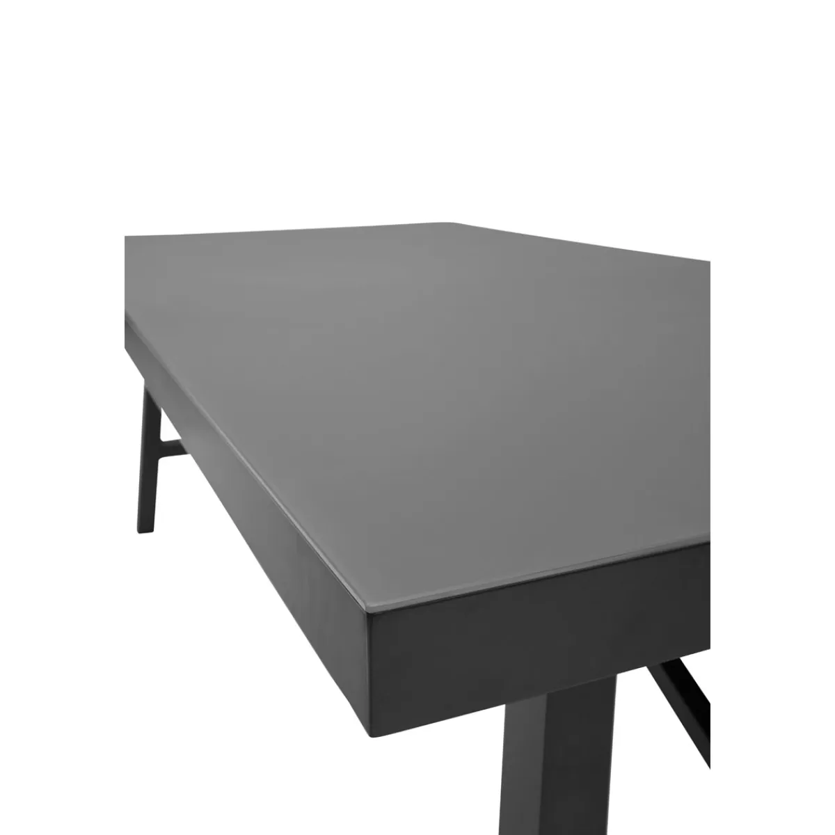 - Die elegante Tischplatte aus 5 mm Strukturglas ist robust und verleiht Ihrem Außenbereich eine moderne Note.