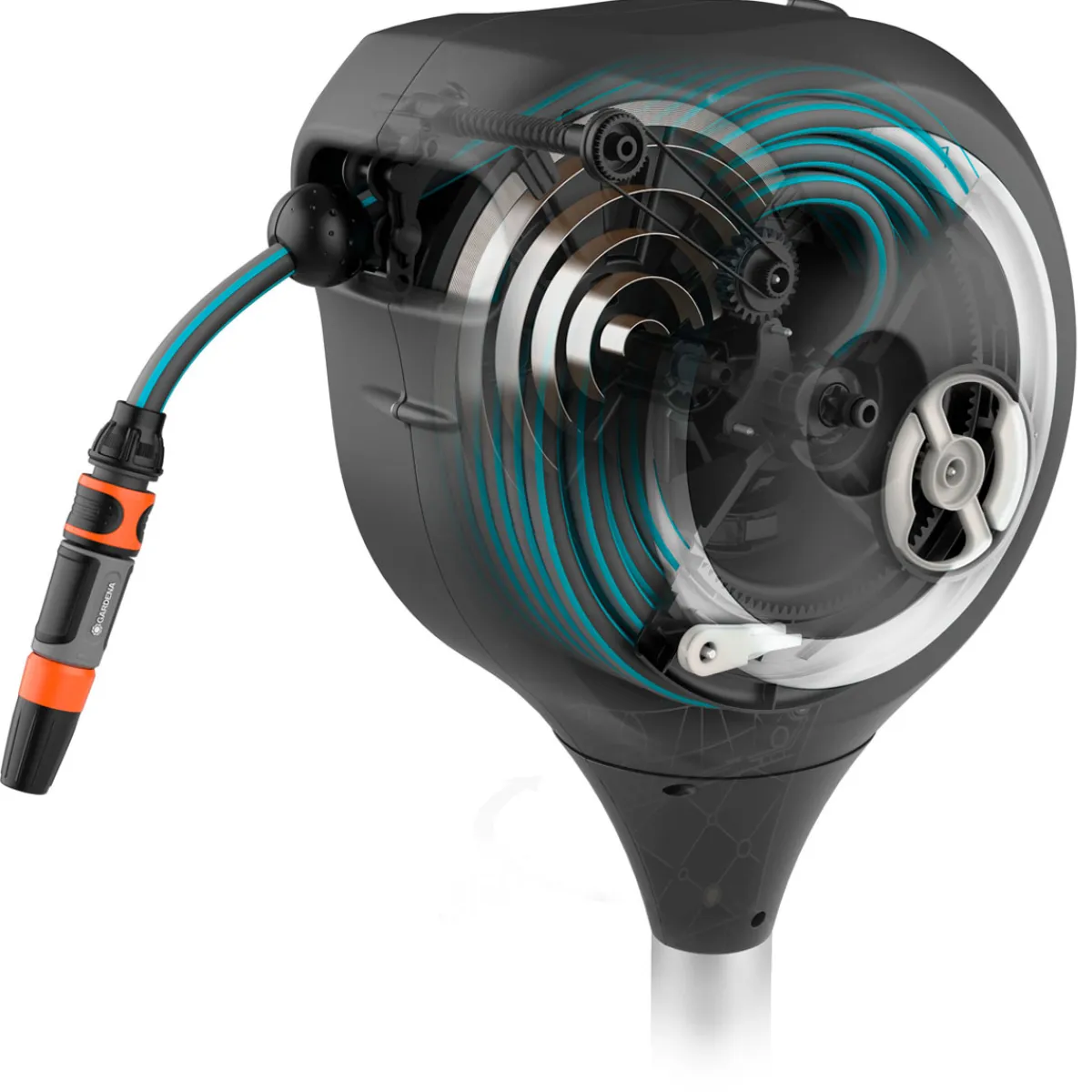 Mit der Gardena Gartenschlauchbox RollUp S 15m weiß wird das Bewässern Ihres Gartens zum Kinderspiel. Die Schlauchtrommel ist freistehend und kann um 360° gedreht werden. Sie ist frostbeständig und verfügt über eine integrierte Schlauchführung sowie einen Nachtropfstopp. Die Aufrollautomatik sorgt dafür, dass der Schlauch immer ordentlich aufgerollt bleibt.