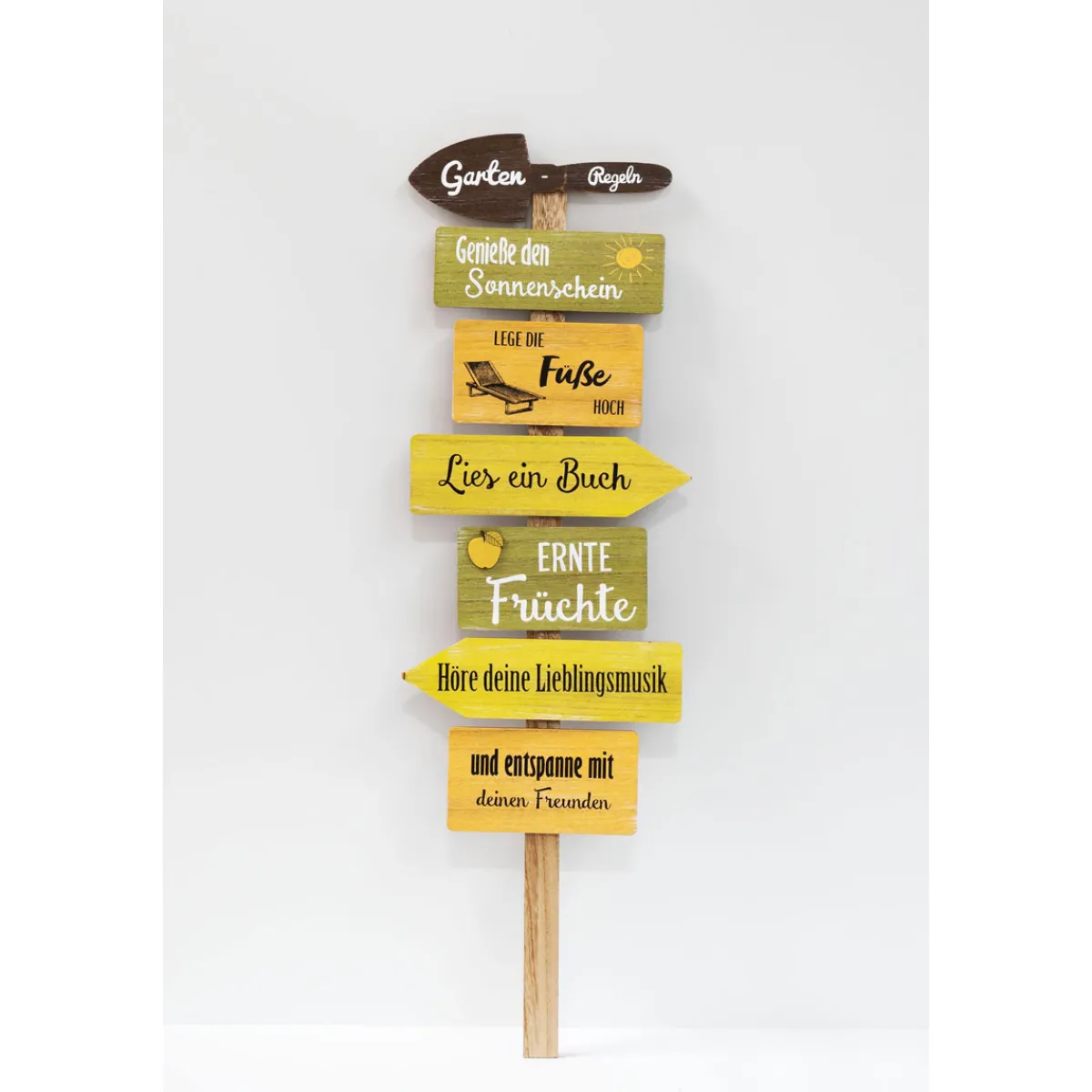 Gartenstecker Sonnenschein – Holz-Gartendekoration in Natur/Grün/Gelb