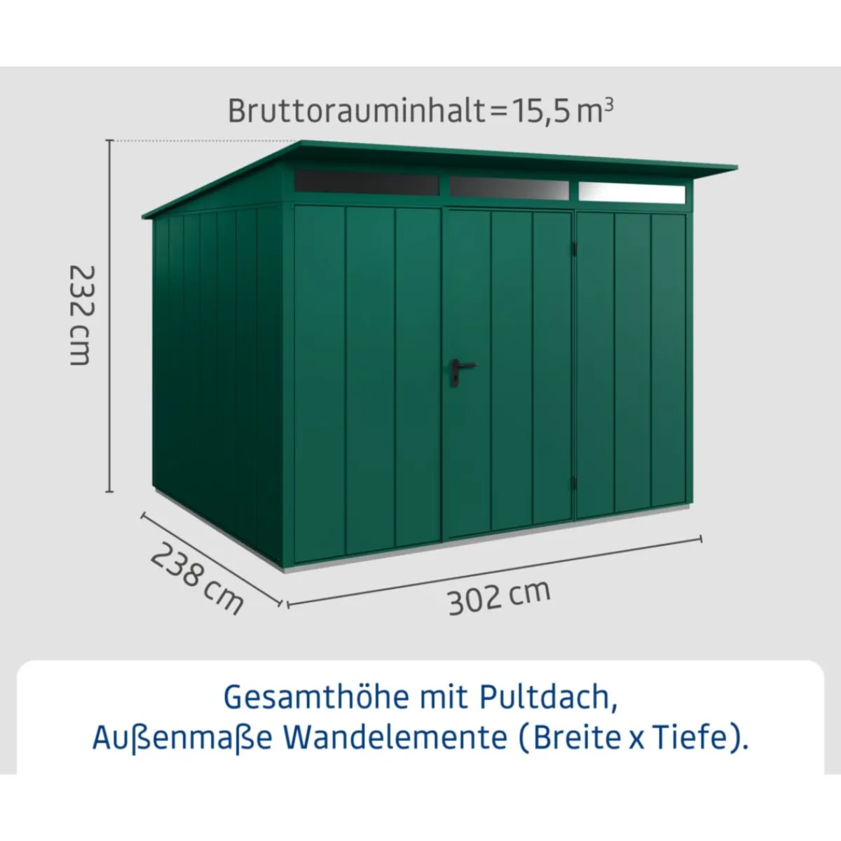 Gerätehaus Elegant-PTyp 3RAL6005 1 flg^EcoStar Clearance