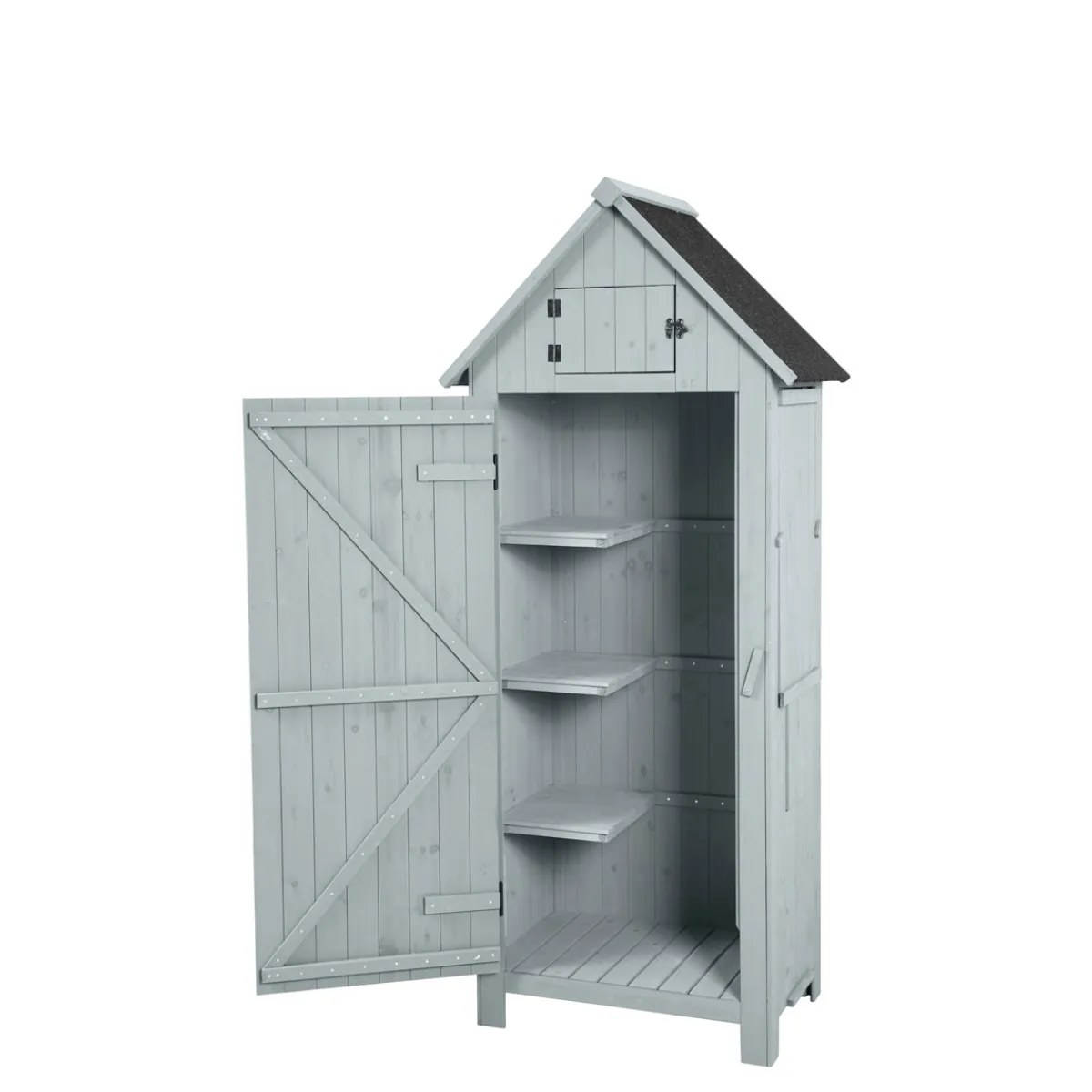 - Dank des Satteldachs ist der Schrank besonders stabil und witterungsbeständig.