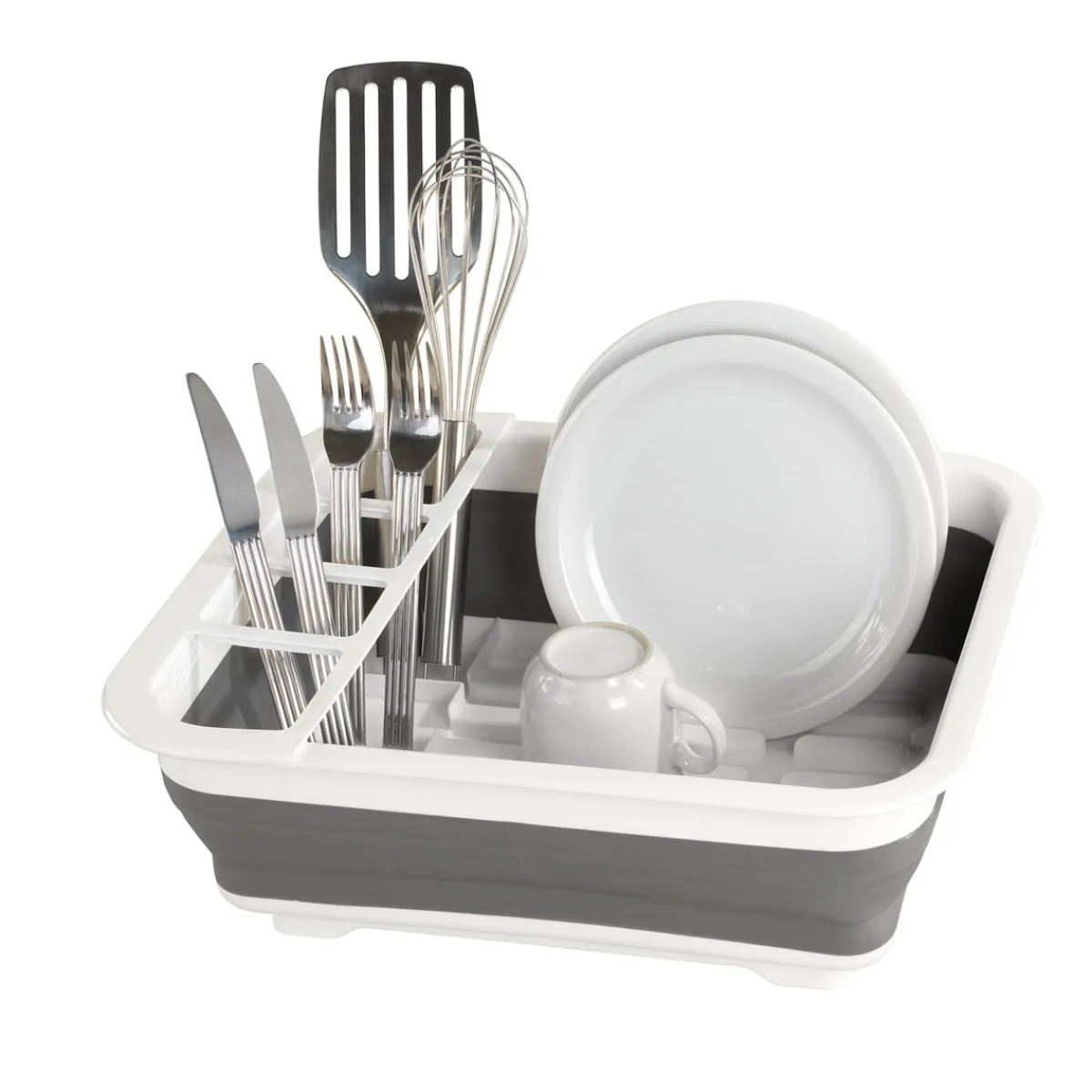 - Hochwertiger Abtropfkorb aus flexiblem Kunststoff in Grau/Weiß