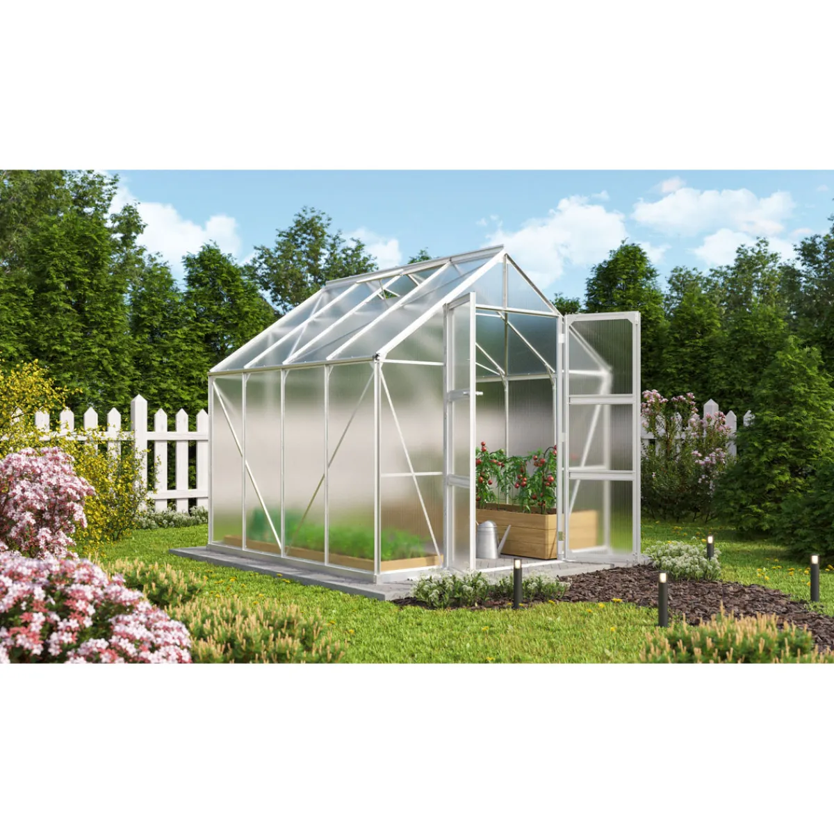 Das Vitavia Gewächshaus Domus eignet sich ideal für Hobbygärtner und alle Gartenliebhaber, die ihren Pflanzen einen geschützten Raum bieten möchten. Es ist perfekt geeignet für den Anbau von Gemüse oder als Überwinterungsplatz für frostempfindliche Pflanzen.