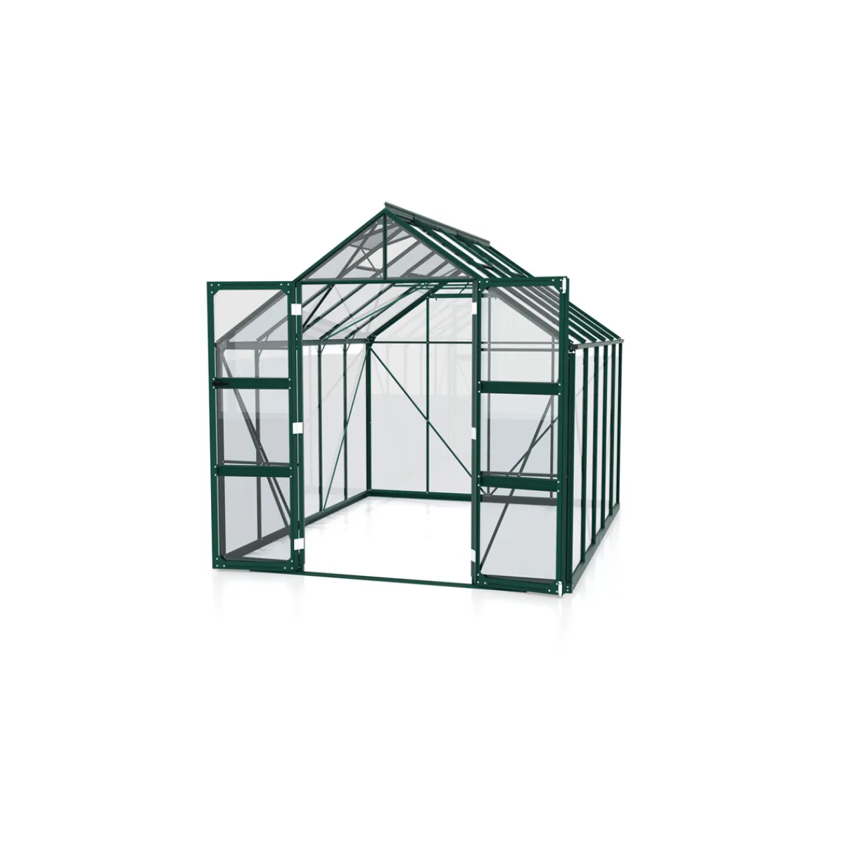 Das Vitavia Gewächshaus Domus bietet Ihnen eine hochwertige Konstruktion aus pulverbeschichtetem Aluminium in smaragdgrüner Farbe sowie Sicherheitsglas-Elemente an den Seitenwänden und im Dachbereich. Mit einer Grundfläche von ca.8,3 m² bietet es genug Platz für Ihre Pflanzen. Die einfache Montage dank der etablierten Federklammertechnik ermöglicht Ihnen ein schnelles Aufstellen des Gewächshauses ohne großen Aufwand.