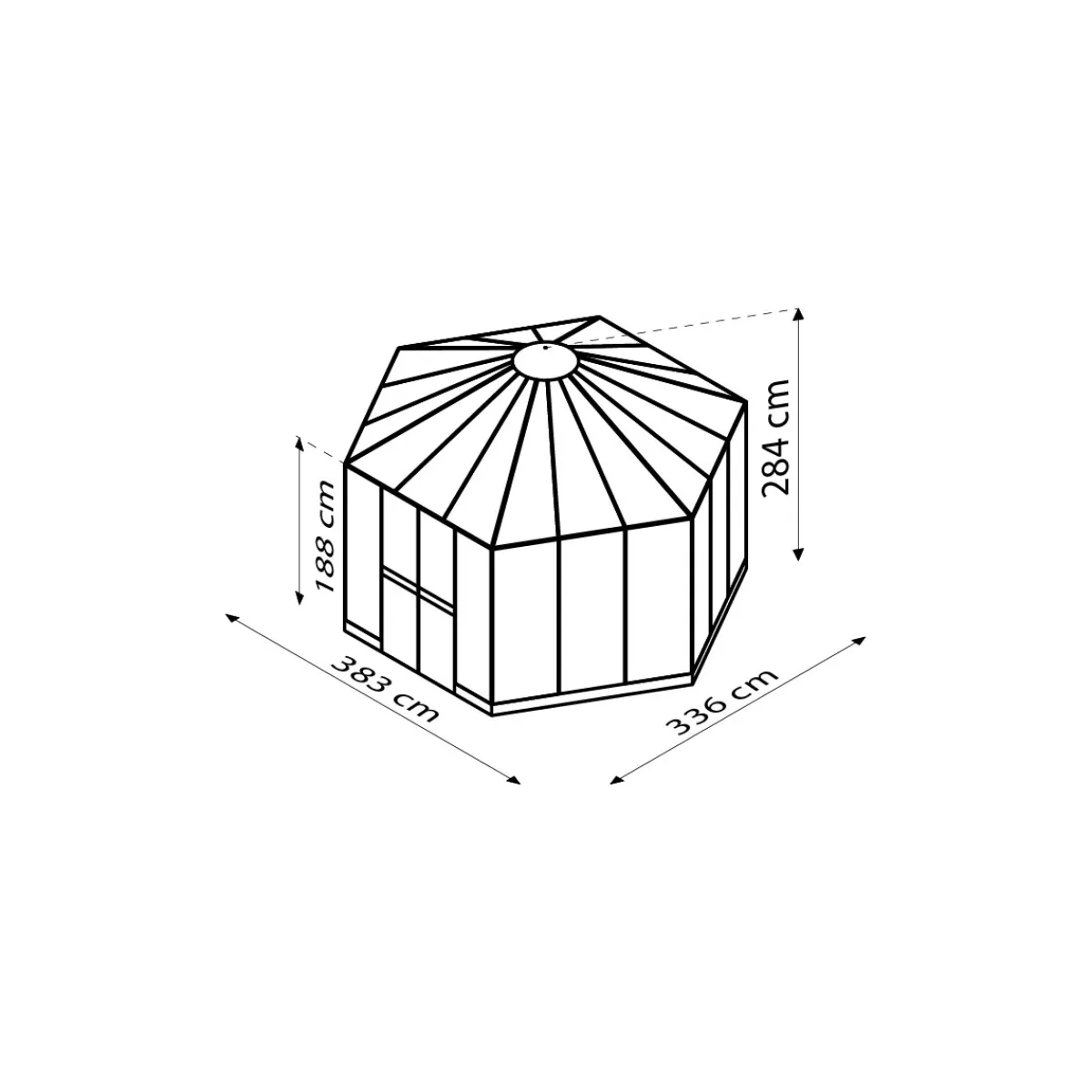 - – Außenmaße (BxHxT): 383 x 284 x 336 cm (inklusive Dachüberstand)