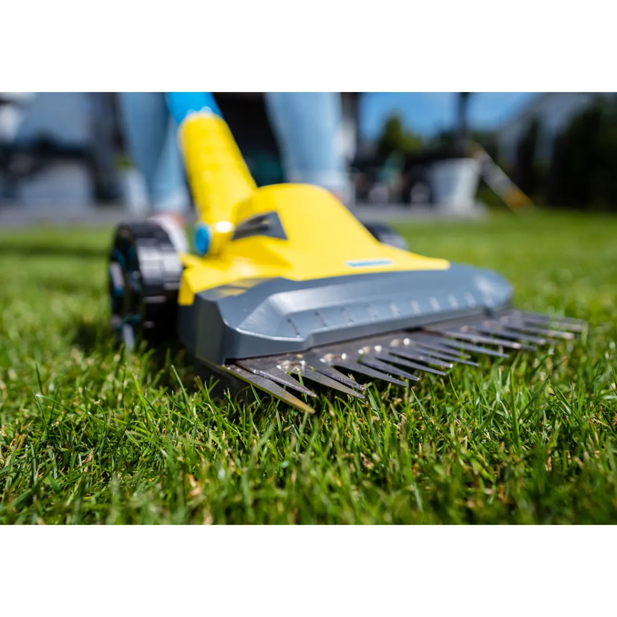 - Höhenverstellung in drei Stufen (3 cm – 5 cm) für individuelle Anpassung an den Rasen