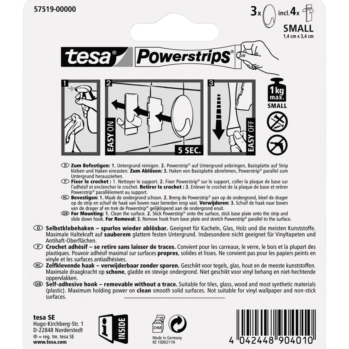 Mit den Tesa Haken Powertstripe Small chrom Oval haben Sie eine stylische und praktische Lösung für Ihre Garderobe gefunden. Die ovalen Haken sind aus hochwertigem Kunststoff gefertigt und in mattem Chrom gehalten. Sie lassen sich einfach anbringen, sind belastbar bis zu 1 kg und dank der tesa Powerstrips-Technologie jederzeit spurlos wieder ablösbar.