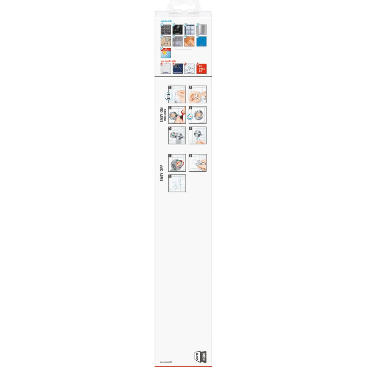 - – Hält auf Fliesen, Metall, Naturstein, Marmor, Glas, Holz und vielen Kunststoffen