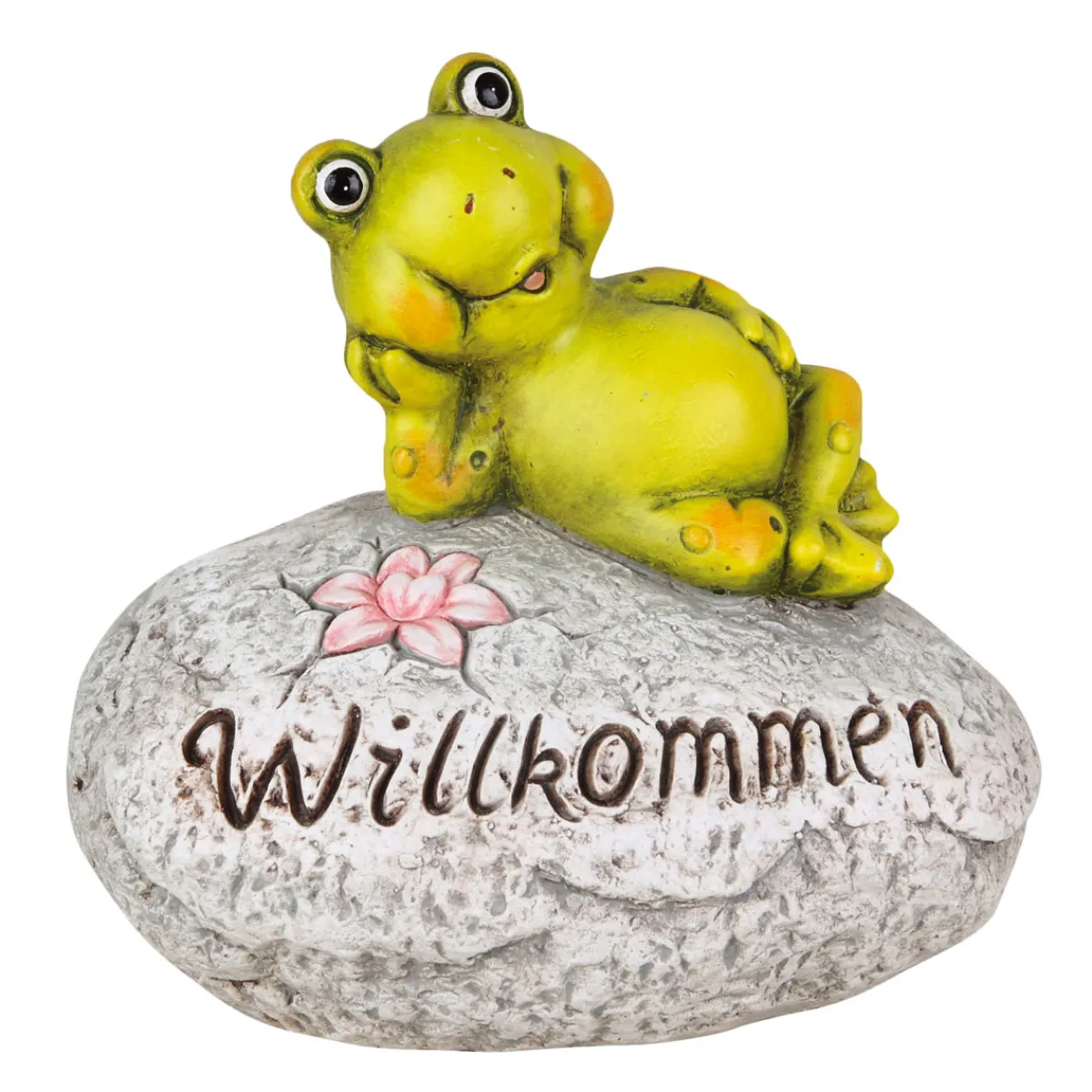 Haveson Frosch auf Stein Willkommen Polystone LxBxH ca 30 x 20 x 28,5