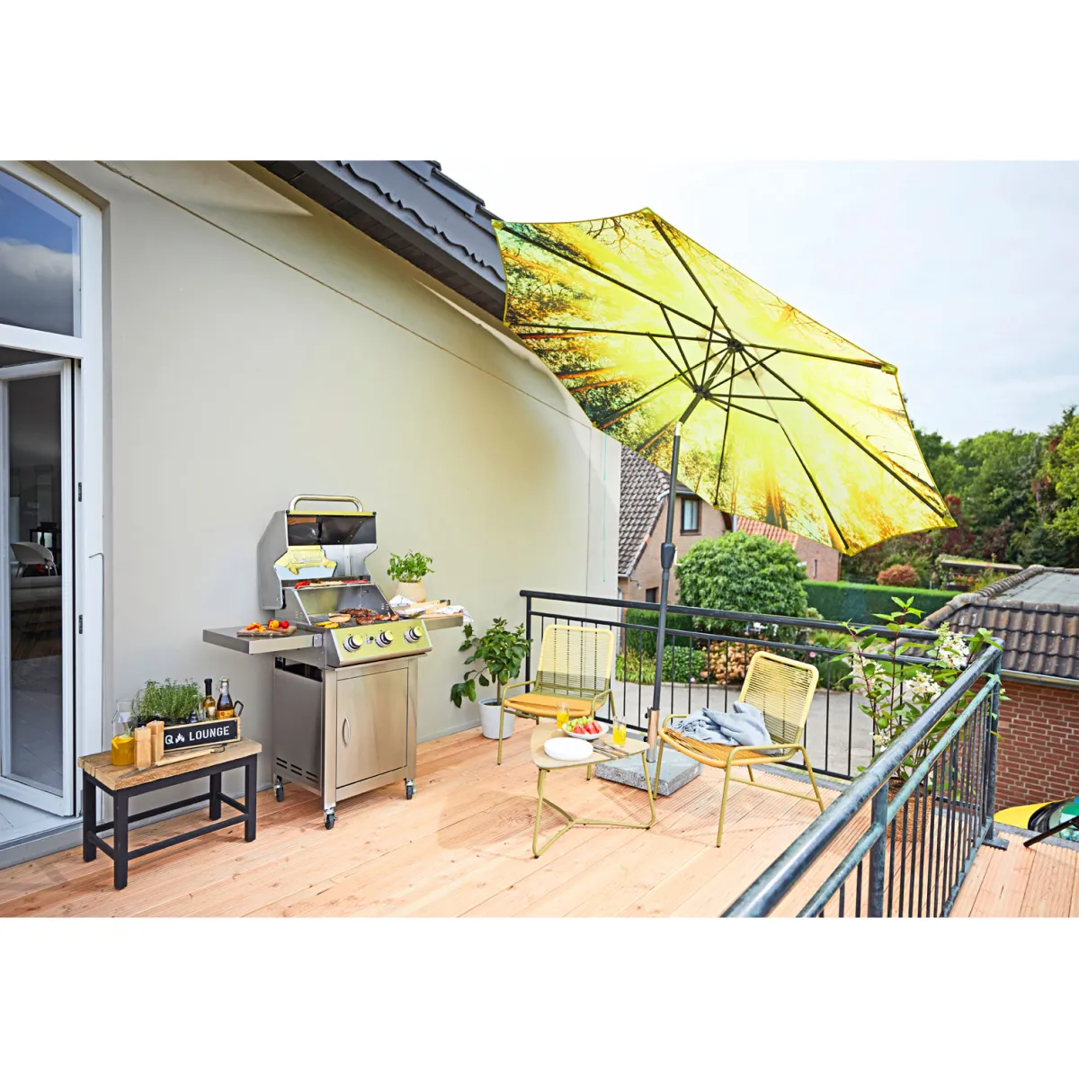 Wer auf der Suche nach einem hochwertigen und gleichzeitig stilvollen Sonnenschutz für den Garten ist, wird mit dem Haveson Gartenschirm Forest anthrazit fündig. Das außergewöhnliche Muster und die robuste Bauweise machen ihn zu einem echten Blickfang. Mit einem Durchmesser von 300 cm bietet er ausreichend Platz für mehrere Personen und dank seiner Schwenkfunktion kann man ihn flexibel ausrichten. Der UV-Schutz von 50+ sorgt dafür, dass man auch bei starker Sonneneinstrahlung geschützt bleibt.