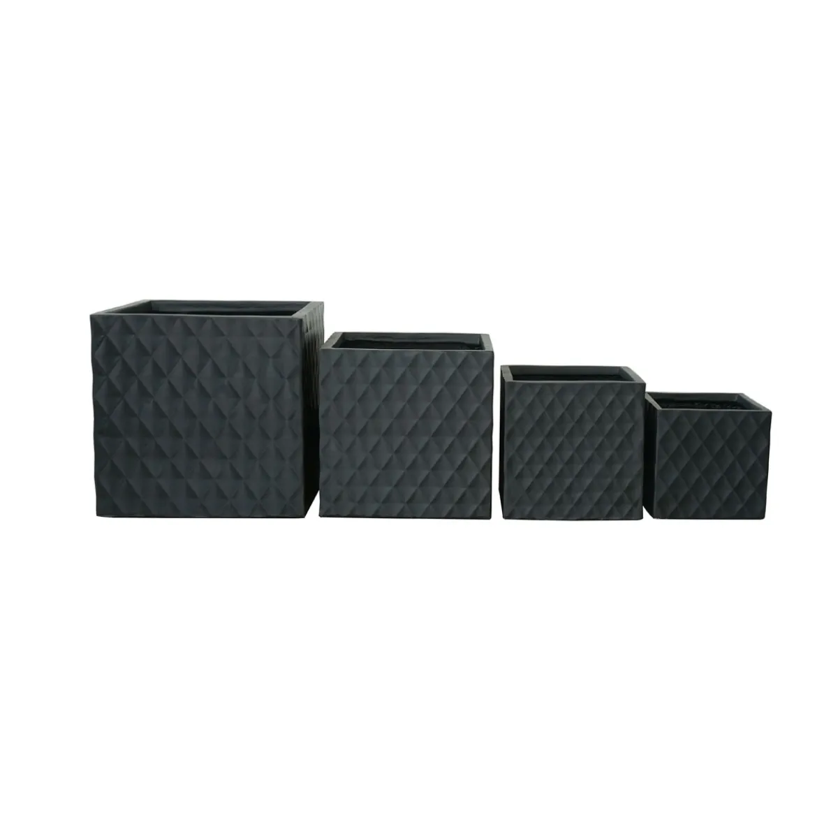 Der Haveson Pflanztopf Big Diamond ist ein handgefertigter, eckiger Pflanzkübel aus robustem Fiberclay in zeitlosem Schwarz. Mit seinen Maßen von 30 x 30 x 30 cm und einem Bodenloch ist er perfekt für den Einsatz im Freien geeignet.