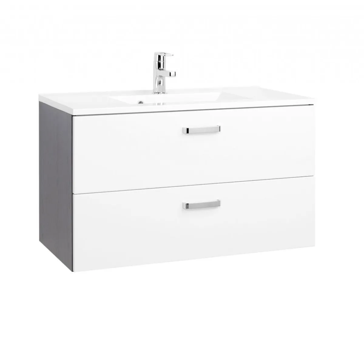 Held Bologna Waschtisch mit Unterschrank B: 90 cm Hochglanz weiß graphitgrau