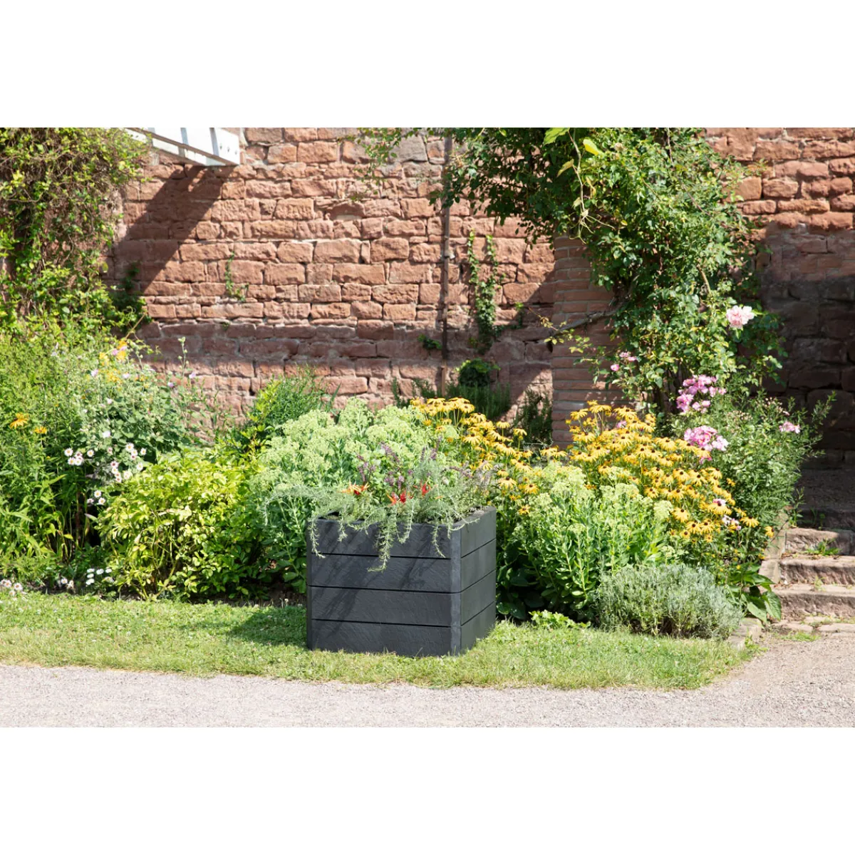 - Eckiges Hochbeet mit einer Größe von 60 x 60 x 50 cm (BxHxT)