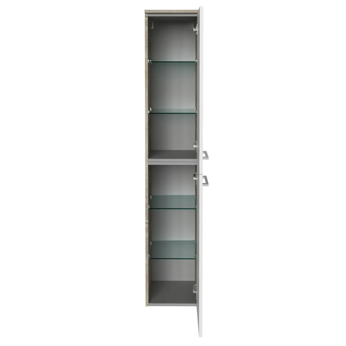 Mit dem Fackelmann Hochschrank rechts B.Style holen Sie sich einen hochwertigen und feuchtigkeitsbeständigen Schrank ins Badezimmer. Die Kombination aus Eiche natur und Weiß hochglanz verleiht Ihrem Raum eine moderne Optik.