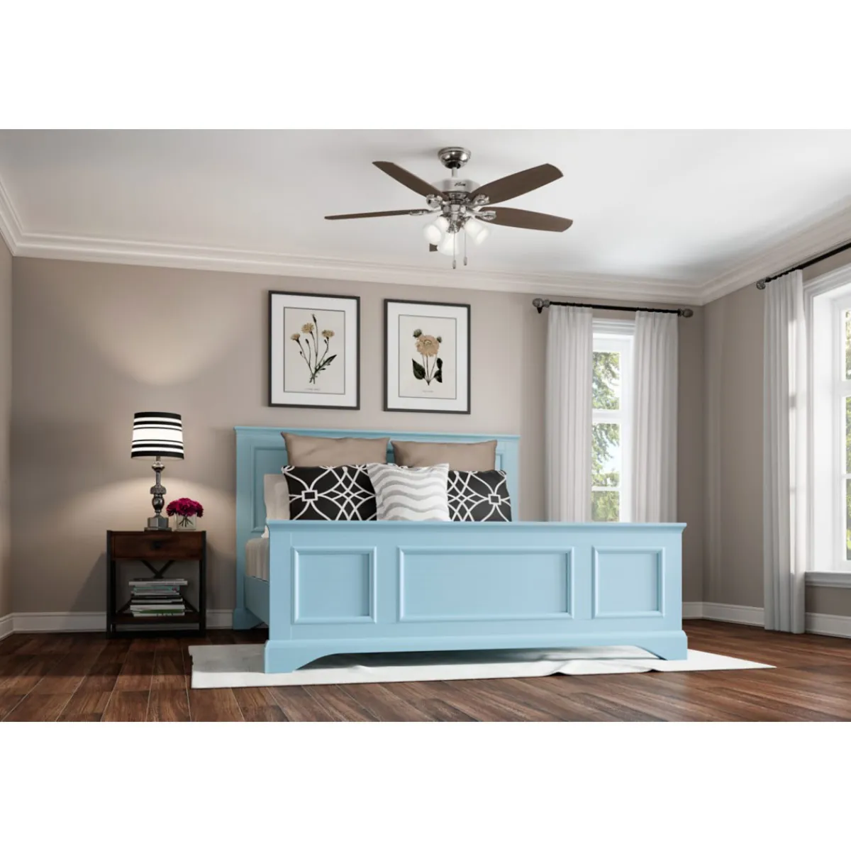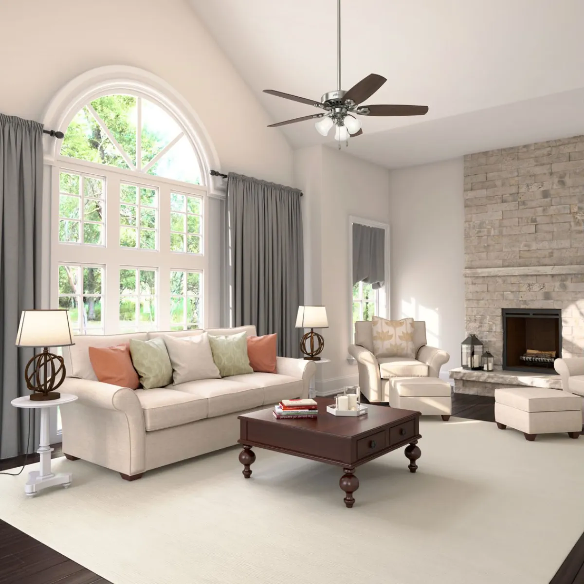 -Einschließlich 7,62 cm langer Fallrohre, um den richtigen Abstand zur Decke zu gewährleisten und die Luftbewegung zu optimieren Inklusive Zugketten für schnelles und einfaches Ein- und Ausschalten und Geschwindigkeitseinstellungen