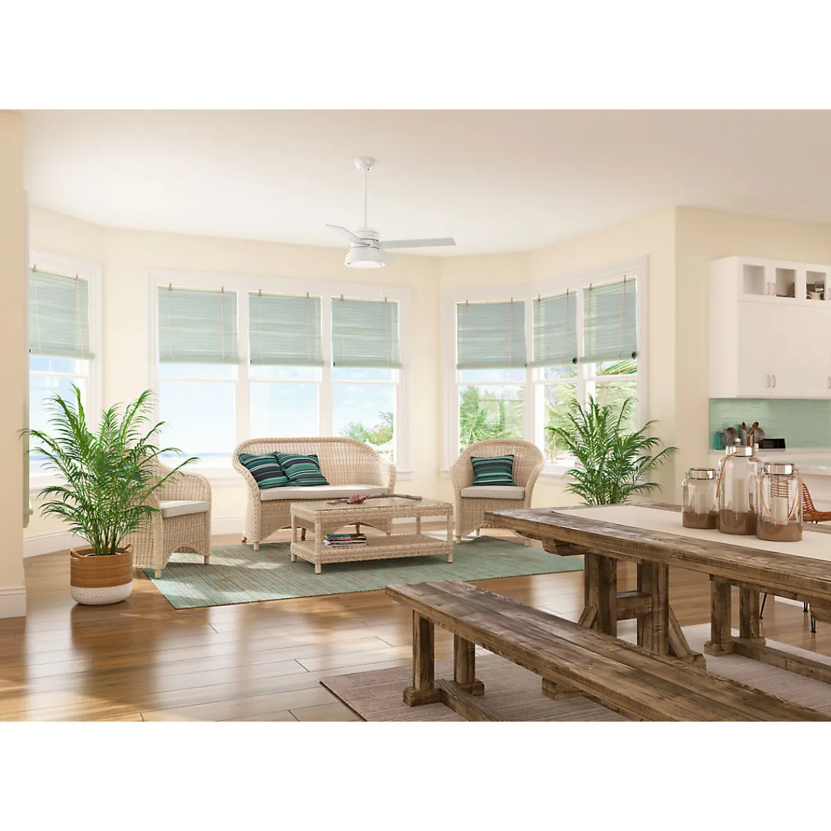 Der umkehrbare Motor ermöglicht es Ihnen, die Richtung Ihres Ventilators vom Abluftmodus im Sommer, der hilft, den Raum zu kühlen, in den Aufluftmodus im Winter zu ändern, um eingeschlossene warme Luft in der Nähe der Decke zirkulieren zu lassen.