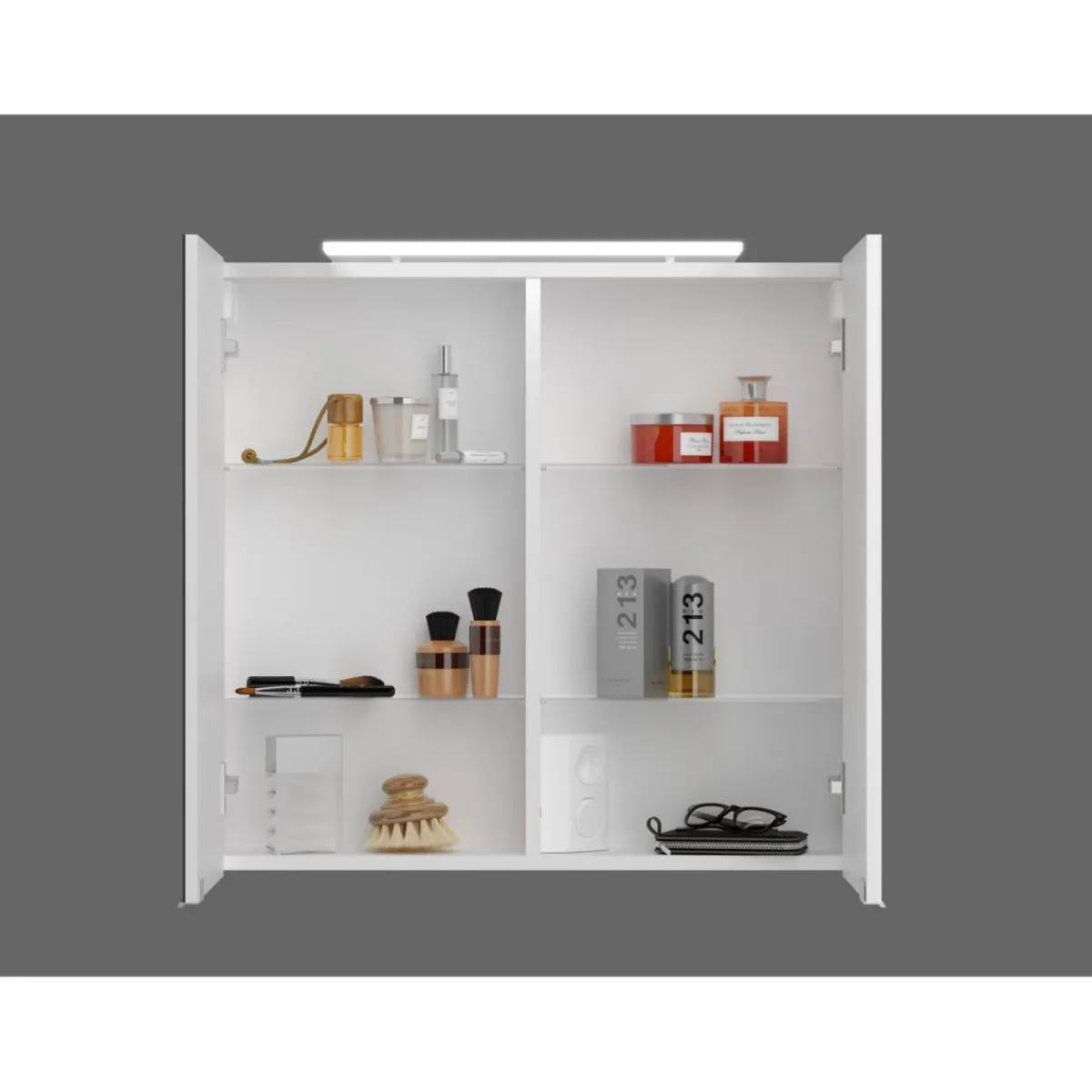 Der Spiegelschrank ist ideal für alle Kunden geeignet, die auf der Suche nach einer praktischen Aufbewahrungsmöglichkeit sind und dabei nicht auf modernes Design verzichten möchten. Durch die integrierte Beleuchtung wird das Badezimmer optimal ausgeleuchtet.