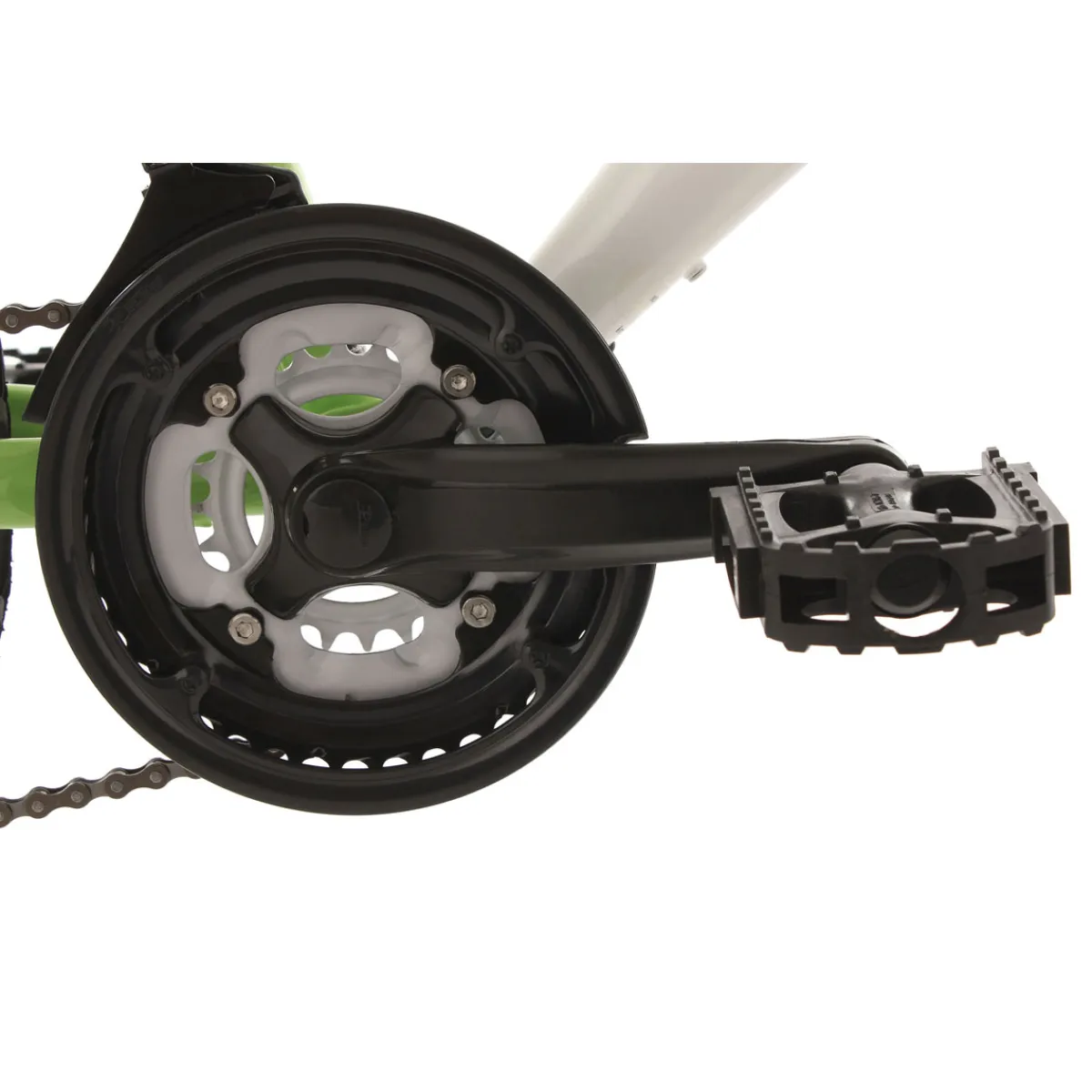 Die Basis bilden die Federgabel und der gefederte Rahmen. Die grobstolligen Reifen und das Design in Blau und Schwarz machen das Kinderrad zu einem coolen Hingucker. Für Sicherheit sorgen dabei V-Brakes vorne und hinten und natürlich die dynamobetriebene Beleuchtung. Das Bike ist außerdem mit einer 18-Gang-Kettenschaltung von SHIMANO ausgestattet.