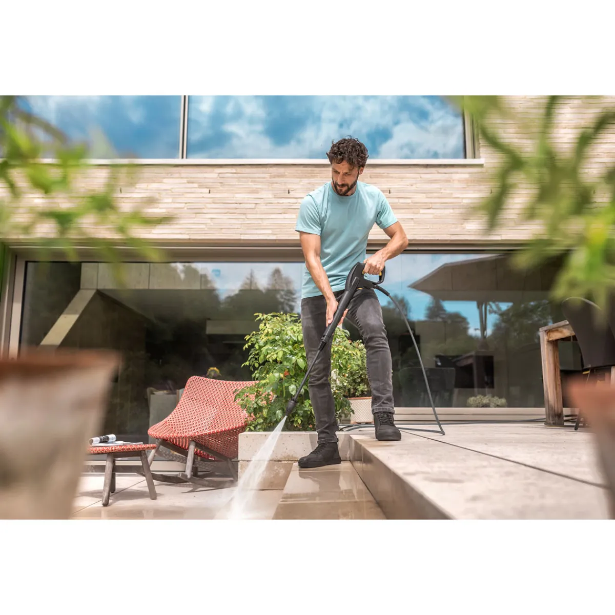 - Länge des Hochdruckschlauchs beträgt komfortable zehn Meter für maximale Bewegungsfreiheit beim Arbeiten