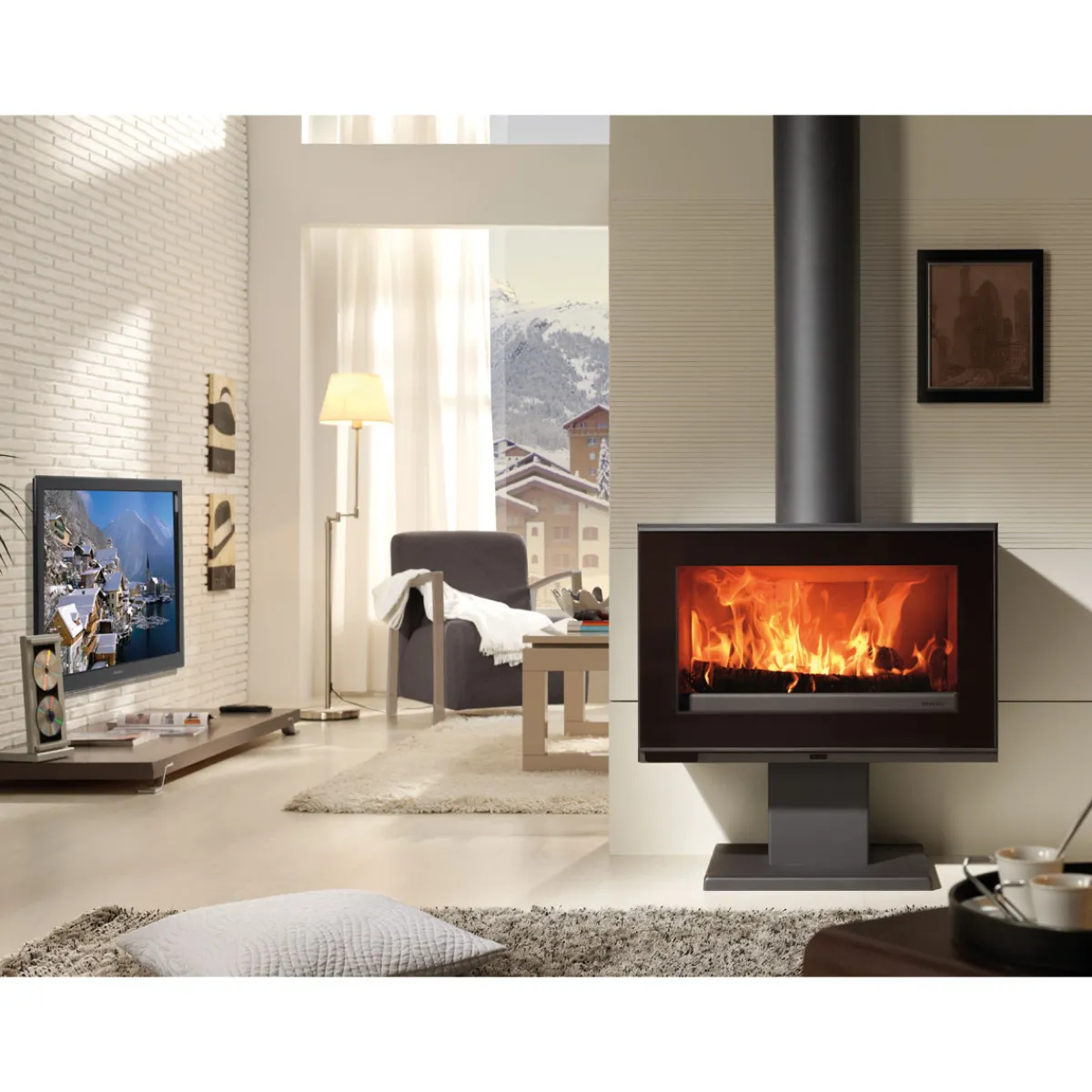 - Große Glaskeramikscheibe für freie Sicht auf das lodernde Feuer