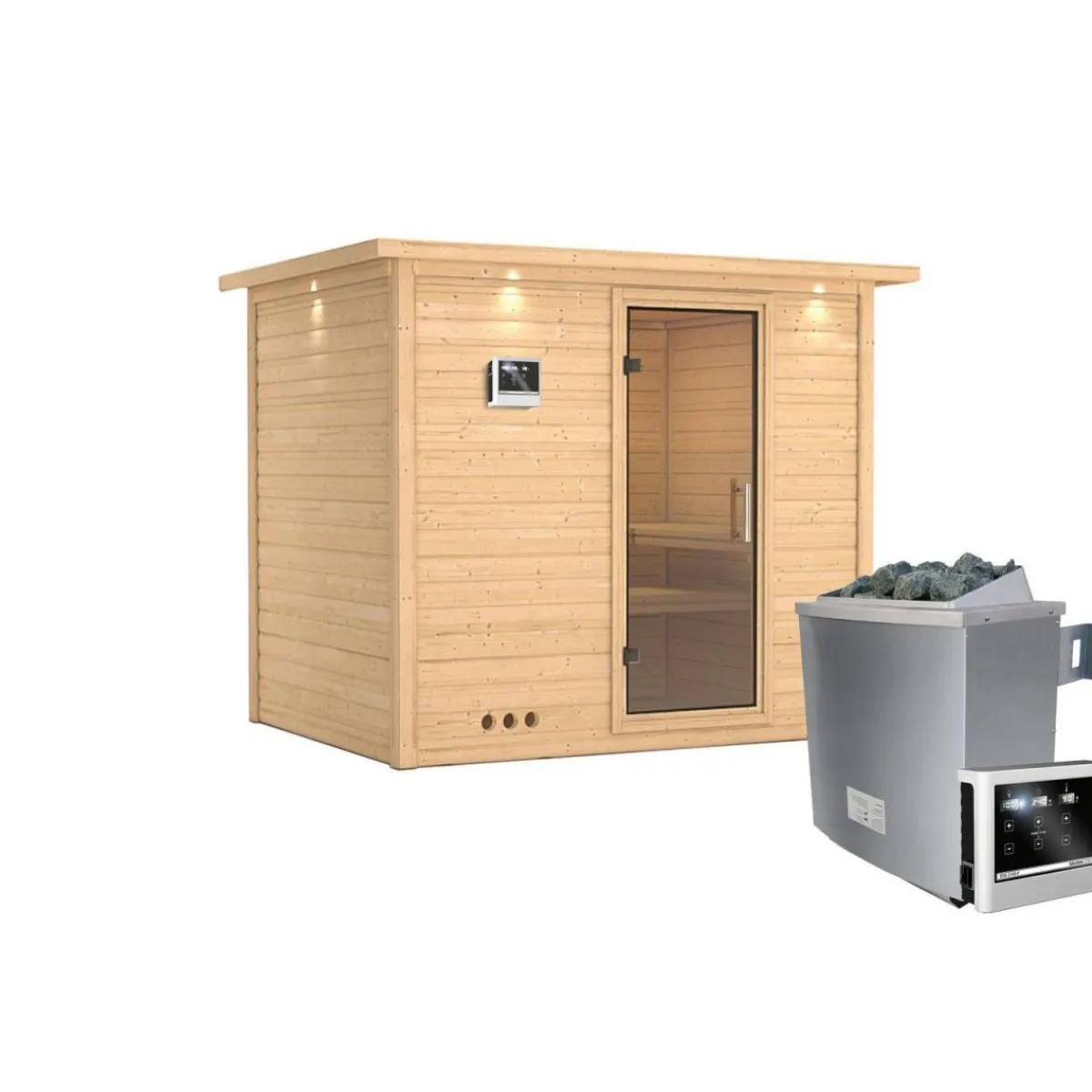 Die Karibu Sauna Sonara bietet alles was das Herz begehrt – von der hochwertigen Verarbeitung bis hin zum umfangreichen Lieferumfang. Mit einer Grundfläche von 4,3 m² und einer Kapazität für bis zu fünf Personen ist sie perfekt für den privaten Gebrauch geeignet. Der leistungsstarke Ofen sorgt dabei stets für eine angenehme Temperatur im Inneren der Kabine.