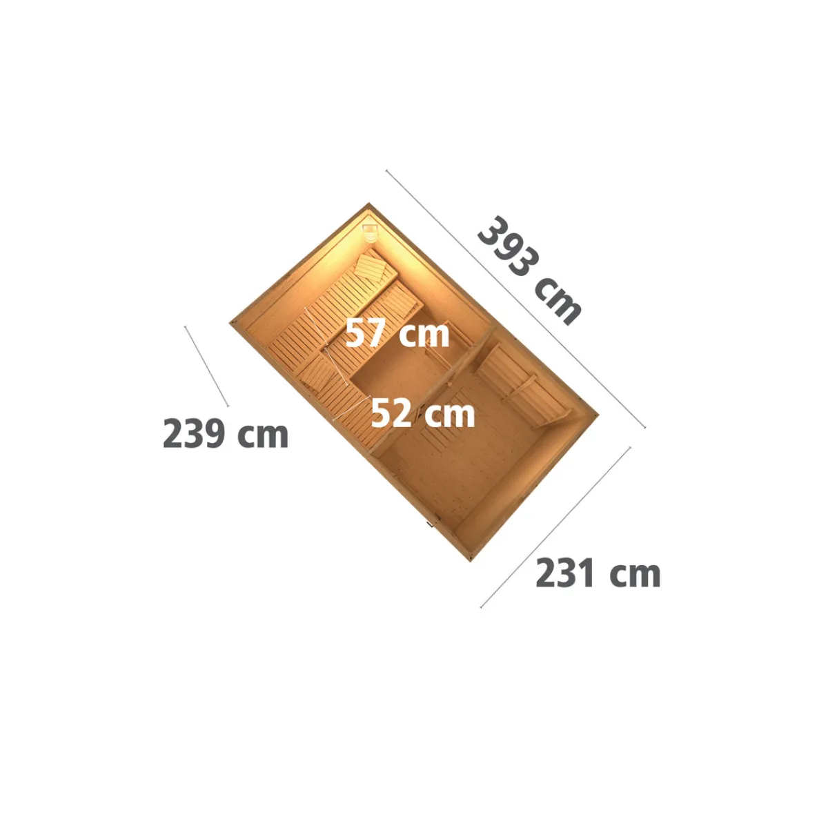 Erleben Sie pure Entspannung in Ihrem eigenen Garten mit dem Karibu Saunahaus Skrollan 3. Aus nordischer Fichte gefertigt und mit einer Wandstärke von 38 mm bietet es Platz für bis zu fünf Personen. Der Ofen mit externer Steuerung sorgt für eine angenehme Wärme und das Espe-Innendesign schafft eine gemütliche Atmosphäre.
