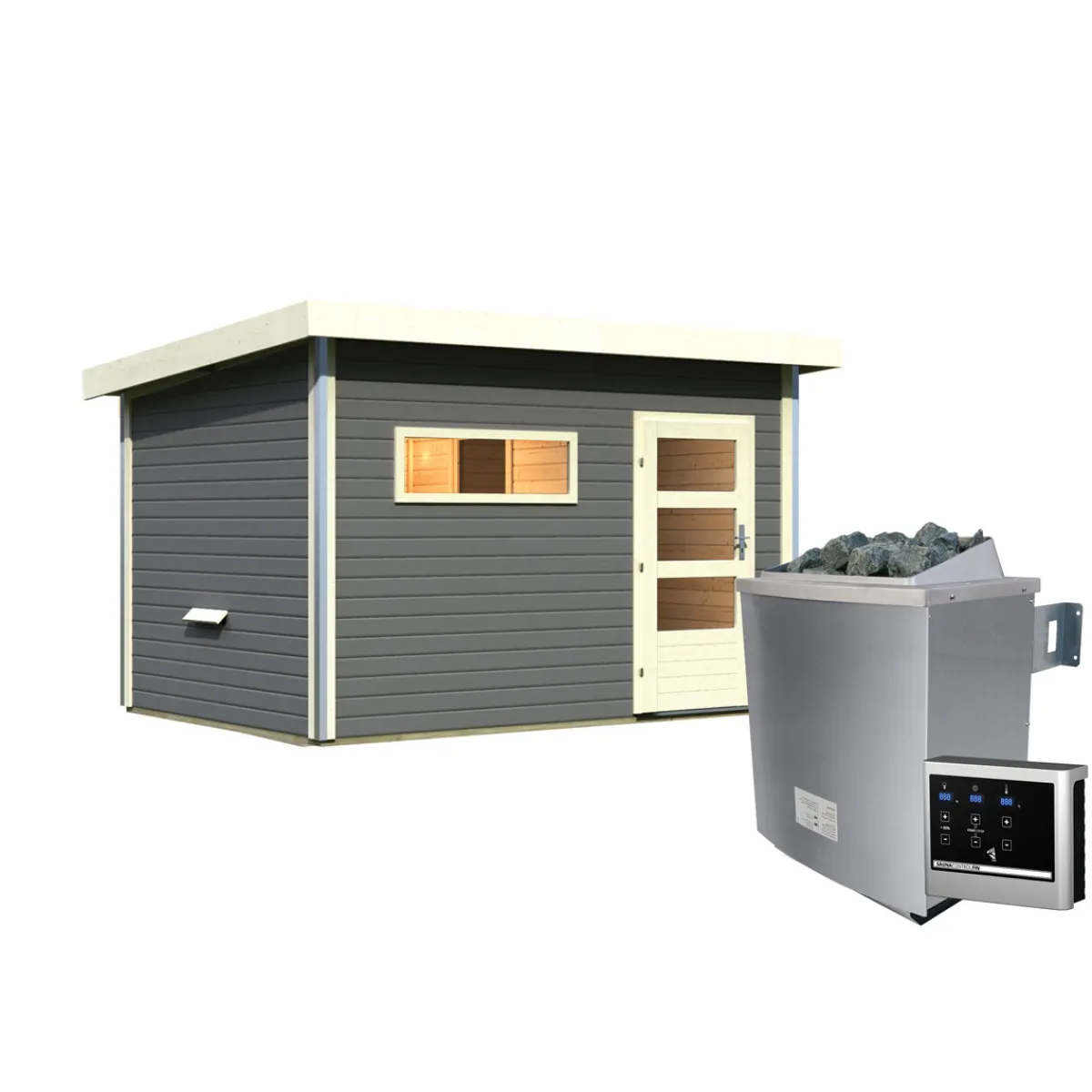 Karibu Saunahaus Skrollan 3 terragrau externe Steuerung