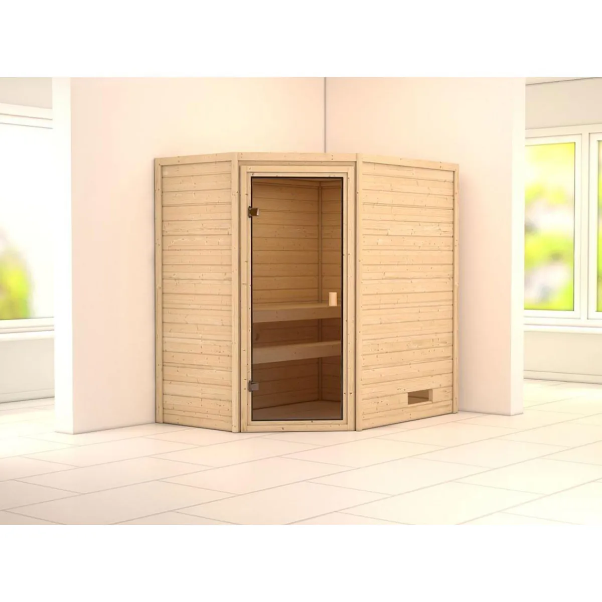 Karibu Systemsauna Svea Eckeinstieg ohne Kranz ohne Ofen