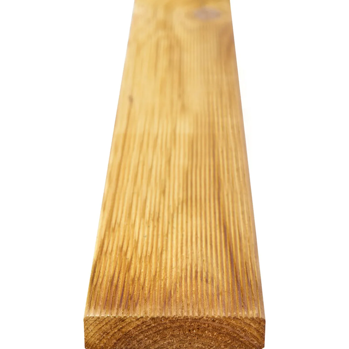 Erleben Sie den Charme von Kiefernholz auf Ihrer Terrasse mit der geriffelten und glatten Kiefer-Terrassendiele. Die kesseldruckimprägnierte Oberfläche sorgt für eine lange Haltbarkeit und die braune Grundfarbe verleiht Ihrem Außenbereich eine warme Atmosphäre.