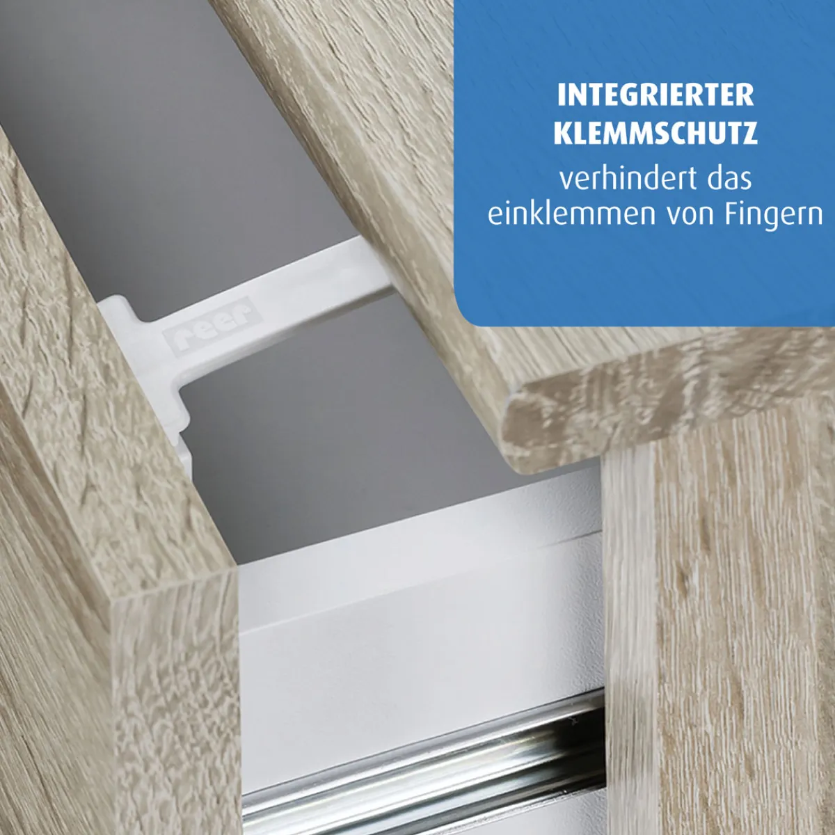 Sichern Sie Ihre Schubladen und schützen Sie Ihre Kinder vor gefährlichen Gegenständen. Die Reer Schubladensicherung ist einfach zu montieren und aus robustem Kunststoff gefertigt.