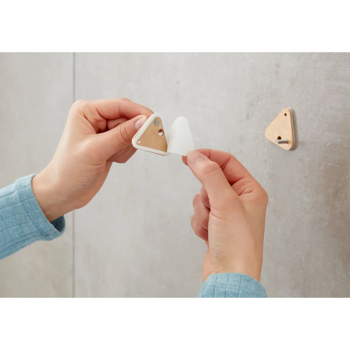 Sichere und unsichtbare Befestigung von Gegenständen auf Mauerwerk, Klinker, Stein, Ziegel oder Beton – mit der Tesa Klebeschraube für Mauerwerk dreieckig.