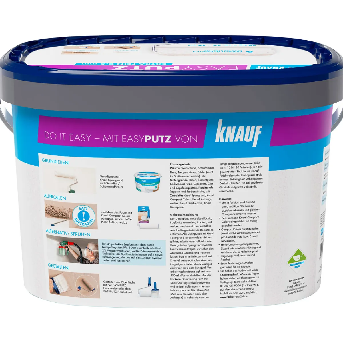 Sie träumen von makellosen, schneeweißen Wänden? Der Knauf Insulation Dekorputz EASY PUTZ fein 0,5 mm macht es möglich! Mit seiner feinen Körnung und der atmungsaktiven Formel bringt er nicht nur eine edle Optik in Ihr Zuhause, sondern sorgt auch für ein gesundes Raumklima. Egal ob auf Gipskarton, Putz oder Beton – dieser Oberputz ist vielseitig einsetzbar und kinderleicht zu verarbeiten. Verabschieden Sie sich von langweiligen Wänden und verleihen Sie Ihrem Zuhause den Wow-Effekt!