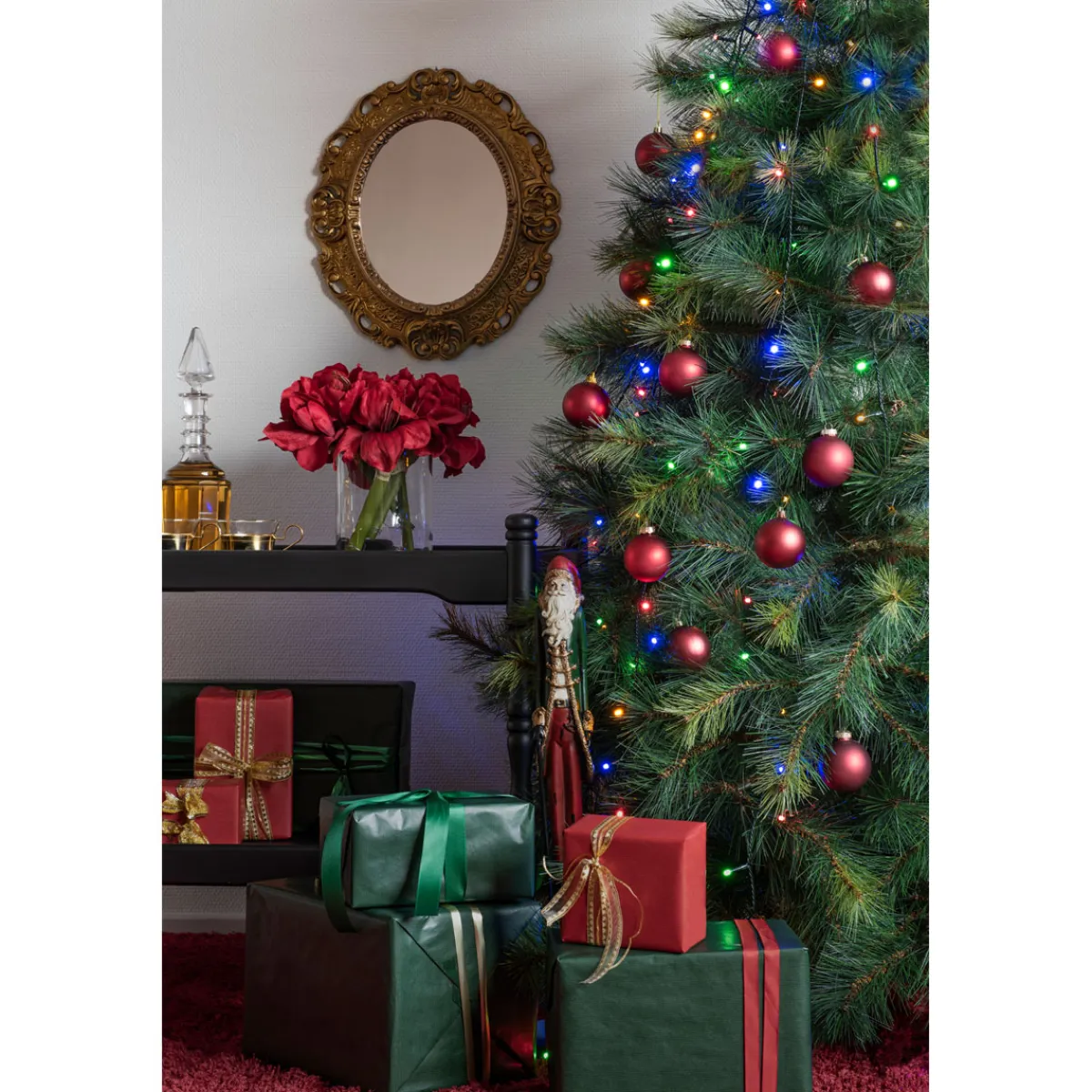 Der Baummantel eignet sich perfekt für alle, die ihre Weihnachtsdekoration um einen besonderen Hingucker erweitern möchten. Mit seinen bunten Lichtern und dem Durchmesser von 8,5 Metern ist er besonders gut für große Räume oder hohe Decken geeignet.
