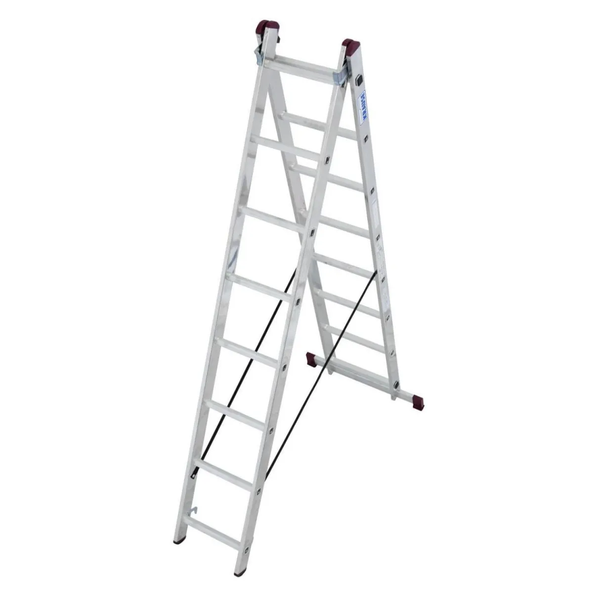 Die Krause CORDA Mehrzweckleiter ist eine zweiteilige, sprossenverstellbare Leiter aus Aluminium mit einer Arbeitshöhe von bis zu 4,85 m. Mit ihrem geringen Gewicht von nur 8,2 kg und ihrer breiten Quertraverse ist sie ideal für den Einsatz in Gewerbe und Privat geeignet.