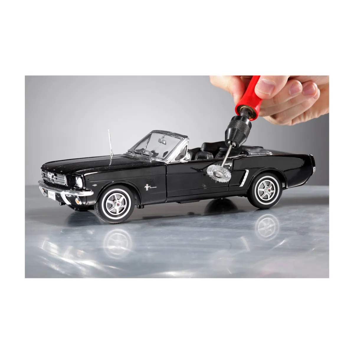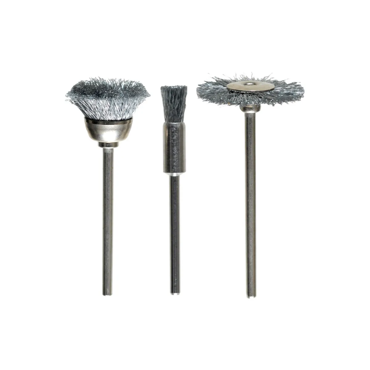 - Drei verschiedene Bürsten: Ø 22 mm Scheibenbürste, Ø 18 mm Topfbürste und Ø 5 mm Pinselbürste