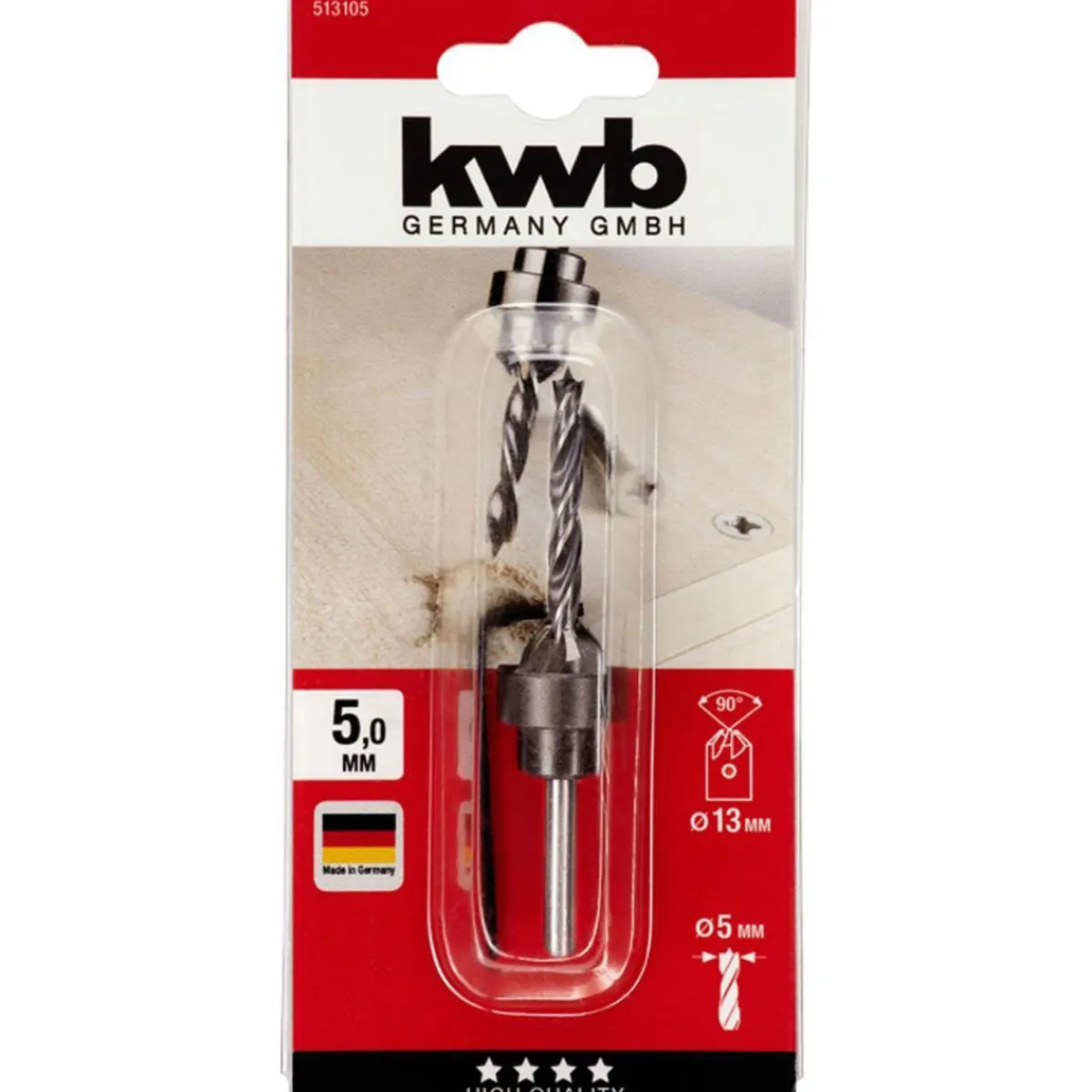 kwb Holzspiralbohrer-Set mit Aufstecksenker und Tiefenstop 3 teilig Durchmesser 5 mm