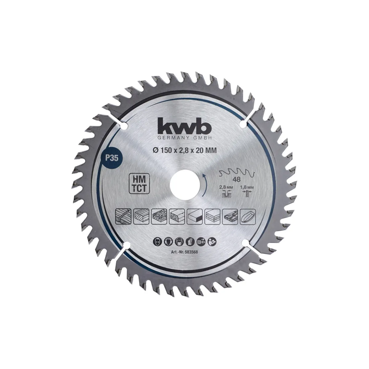 - Durchmesser von 150 mm und Bohrung von 20 mm passen perfekt zu Ihrer Handkreissäge.