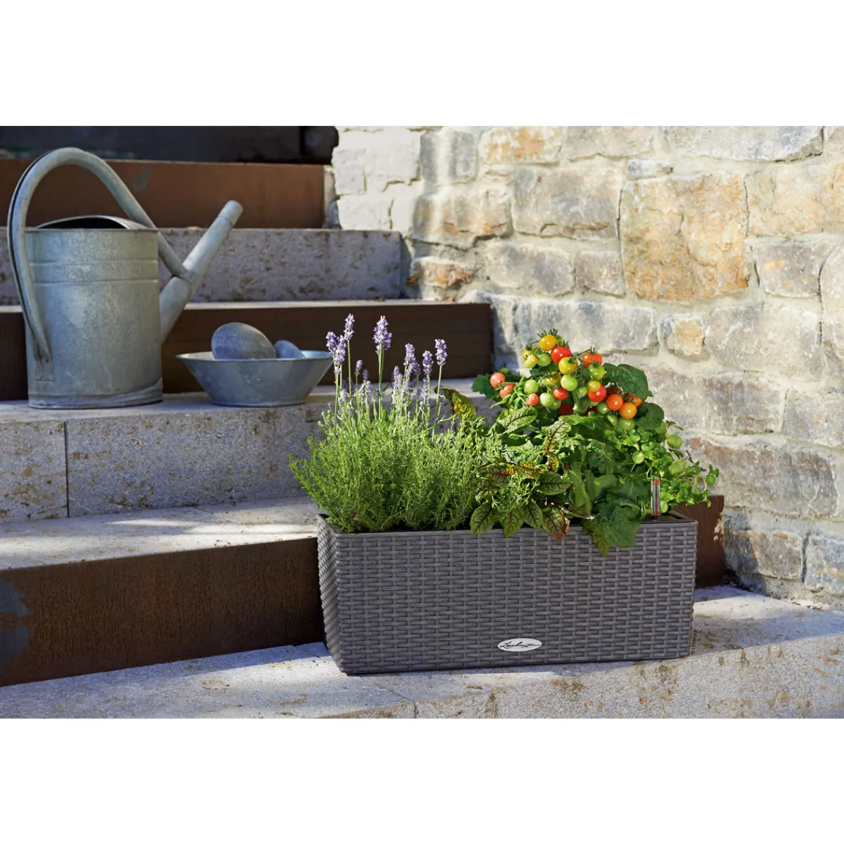 Der LECHUZA Blumenkasten Balconera Cottage 50 in Granit ist nicht nur ein Hingucker, sondern auch ein wahres Multitalent. Mit seiner eleganten Rattanoptik und dem cleveren Bewässerungssystem bringt er frischen Wind auf Ihren Balkon oder Ihre Terrasse. Die frost- und UV-beständigen Eigenschaften machen ihn zum perfekten Partner für jede Jahreszeit – egal ob heiße Sommertage oder kalte Winterabende. Dieser Balkonkasten vereint Funktionalität mit modernem Design und sorgt dafür, dass Ihre Pflanzen immer optimal versorgt sind.
