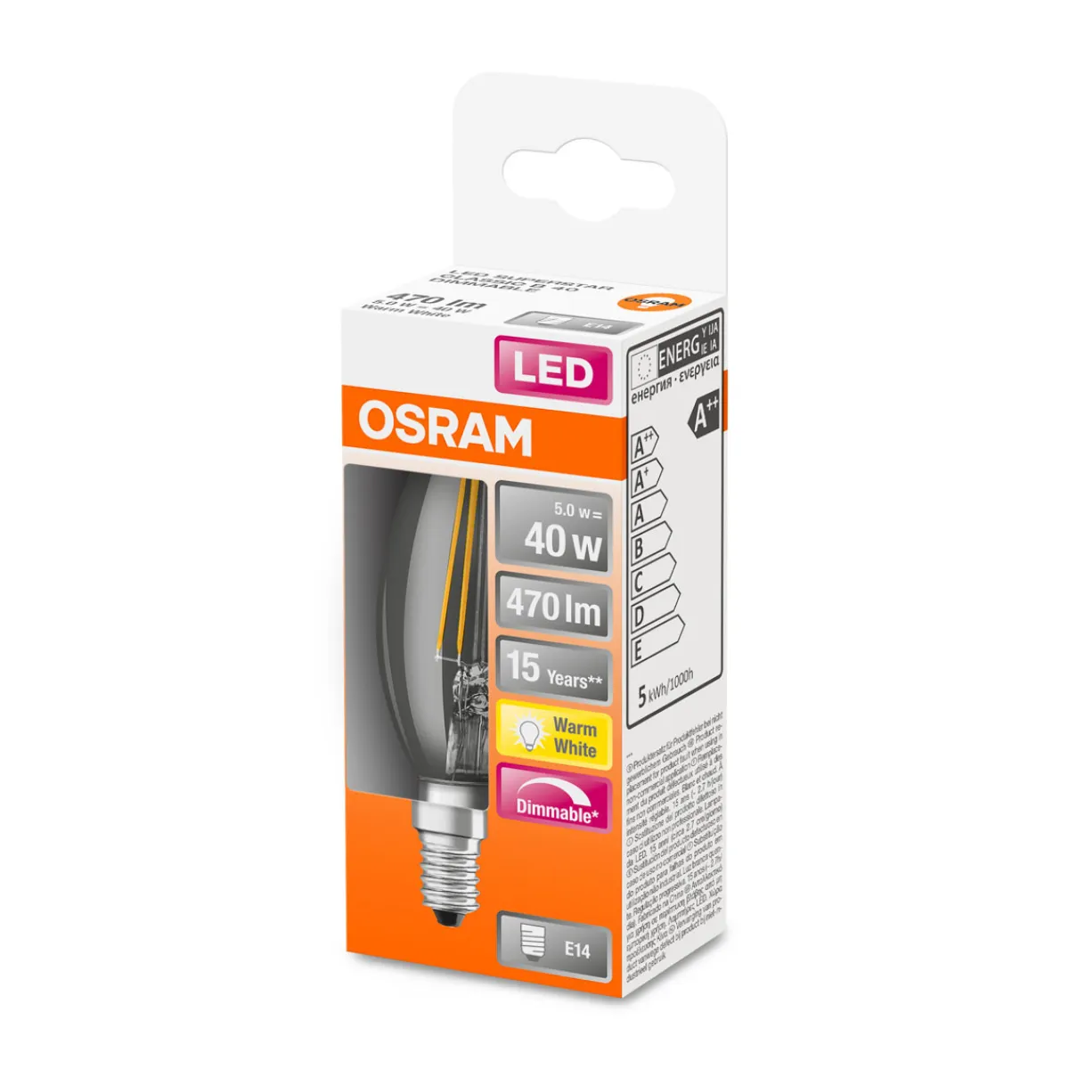 Mit dem Osram LED-Leuchtmittel in Kerzenform erhalten Sie ein energieeffizientes Leuchtmittel, das dank seiner warmweißen Lichtfarbe und der Dimmfunktion eine gemütliche Atmosphäre schafft. Es ist die ideale Wahl als Ersatz für herkömmliche 40 W Glühbirnen und eignet sich perfekt für alle, die Wert auf Nachhaltigkeit legen.