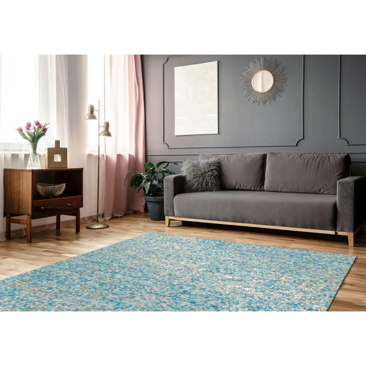 Tauchen Sie ein in die Welt des stilvollen Wohnens mit dem Lederteppich Finish 100 in Türkis und Gold. Dieser außergewöhnliche Teppich vereint luxuriöses Design mit hochwertigem Material und verwandelt jeden Raum in eine Oase der Eleganz. Die Grundfarbe Blau, kombiniert mit den edlen Akzenten von Türkis und Gold, sorgt für ein einzigartiges Ambiente, das Ihre Einrichtung auf ein neues Level hebt. Mit einer Höhe von nur 5 mm fügt sich dieser Teppich harmonisch in Ihren Wohnbereich ein und ist zudem perfekt für Fußbodenheizungen geeignet. Lassen Sie sich von seiner Qualität und seinem Stil überzeugen!