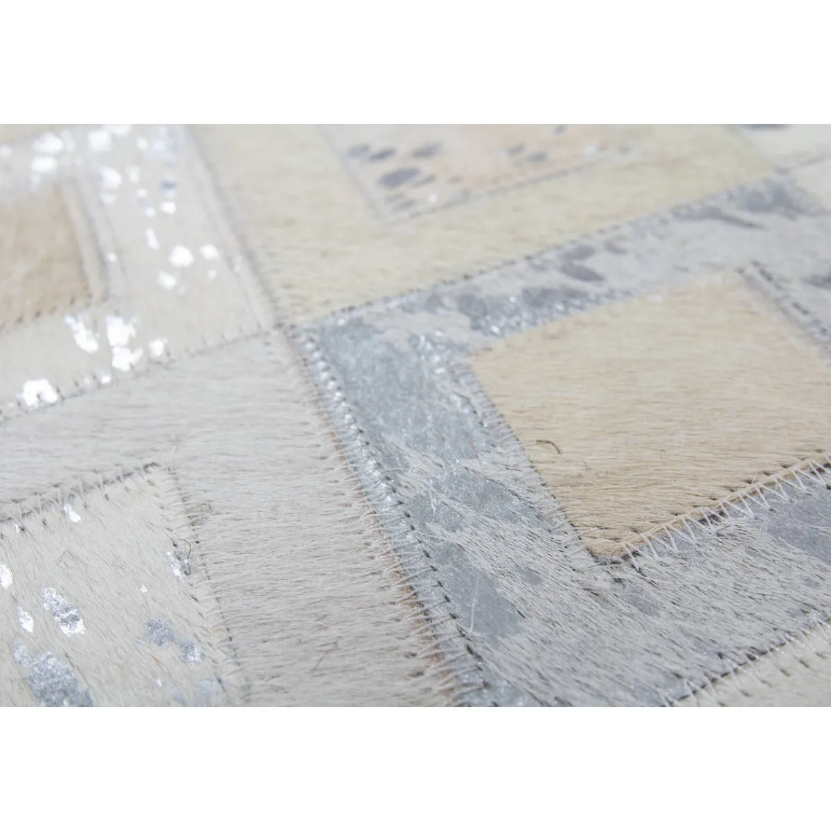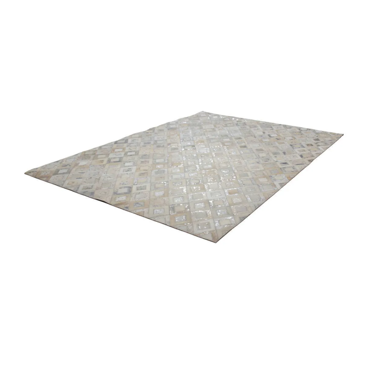 Lederteppich mit Metallic-ApplikationenDer wunderschöne Lederteppich mit eingearbeiteten Applikationen aus metallischer Folie rundet jeden edlen Einrichtungsstil gekonnt ab. Der hochwertige Edel-Teppich aus 100 % Leder überträgt einen individuellen Touch auf seine Umgebung und erzeugt ein ganz besonderes Flair. Von Hand gefertigt ist jeder einzelne Lederteppich ein Unikat. Die Verwendung von edlen Naturmaterialien und die hochwertige Verarbeitung sorgen für ein dynamisches Aussehen und machen jeden Teppich einzigartig, denn bei Naturprodukten kann es in Form, Farbe und Muster zu Abweichungen von bis zu 30 % kommen. Das natürliche Fell kann nach einiger Zeit und bei hoher Beanspruchung gegebenenfalls an Haaren verlieren. Ebenso könnte sich die Metallicfolie unter Umständen ablösen. Dies ist dem Naturprodukt und der Beschaffenheit des Fells geschuldet und kein Produktionsfehler.Setzen Sie ein Statement mit diesem Lederteppich und machen Sie ihn zum Blickfang in Ihren vier Wänden. Er eignet sich für alle Räumlichkeiten – ob Wohnzimmer, Schlafzimmer, Diele oder Esszimmer. Das moderne Rautenmuster verleiht dem Produkt eine ganz besondere Note und kommt in Kombination mit verschiedenen Möbeln gut zur Geltung. Naturfaser-Teppiche fangen Fusselwolken ein und sind daher besonders gut für Allergiker geeignet, da sie gleich abgesaugt werden können. Der extra bequeme Lederteppich ist ein Alleskönner, der sowohl durch seine Optik als auch durch seine Haptik überzeugt.Das strapazierfähige Material macht die schwere Qualität des Teppichs aus, ist äußerst langlebig und pflegeleicht. Für einen spürbaren Wohlfühl-Effekt sorgt dabei die wärmeisolierende Eigenschaft des Leders. Verleihen Sie Ihren Räumen das gewisse Etwas und schaffen Sie Ihre eigene Relax-Insel in verschiedenen Nuancen. Selbst die kleinste Wohnung lässt sich mit diesem wundervollen Naturteppich persönlich einrichten, denn er ist in verschiedenen Größen erhältlich.