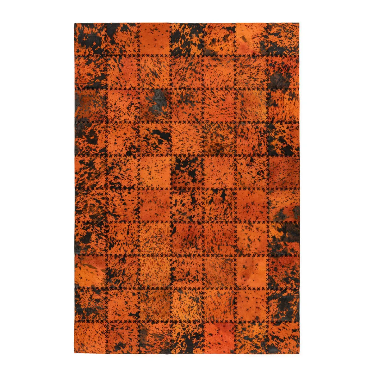 Attraktiver Lederteppich mit Patchwork-MusterDieser Naturteppich aus natürlichem Fell wird schnell zum Hingucker. Die intensive Färbung des Fells und die natürlichen ledernen Bereiche ergeben ein harmonisches Gesamtbild, das sich in jedem Raum sehen lassen kann. Die einzelnen quadratischen Lederstücke wurden in Handarbeit zu einem großen Ganzen zusammengefügt und bilden ein stimmiges Patchwork-Muster. Durch das spezielle Muster und die intensive Farbe erhält der Teppich einen modernen Charakter.Auch in viel genutzten Räumen ist der Teppich ein idealer Bodenbelag, denn das Obermaterial des flachen Flors ist sehr robust und zudem pflegeleicht. Leichte Verschmutzungen lassen sich einfach ausschütteln, absaugen oder sanft abbürsten, wohingegen grobe Verschmutzungen mit einem feuchten Tuch gut beseitigt werden können. Ein Filzrücken verstärkt den Flor, verstärkt die Wärmeeigenschaften des Naturmaterials und schont gleichzeitig den Boden. Durch das natürliche Leder und die Handarbeit ist jeder Teppich ein Einzelstück. Form, Farbe und Muster können um bis zu 30 % von dem dargestellten Muster abweichen. Mit der Zeit und bei hoher Beanspruchung kann der Teppich gegebenenfalls an haaren verlieren. Dies liegt an der natürlichen Materialbeschaffenheit und ist weder ein Qualitätsmangel noch ein Produktionsfehler.