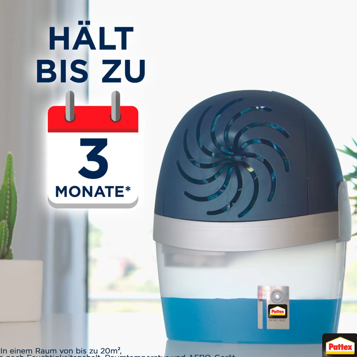 Mit den Pattex Stop Feuchtigkeit AERO 360° Nachfüll-Tabs haben Sie die perfekte Lösung gegen feuchte Räume gefunden. Die Tabs sind neutral und können in allen Wohnräumen eingesetzt werden. Mit einer Entfeuchtungsleistung von bis zu 1,3 Litern pro Tag sorgen sie für ein angenehmes Raumklima.