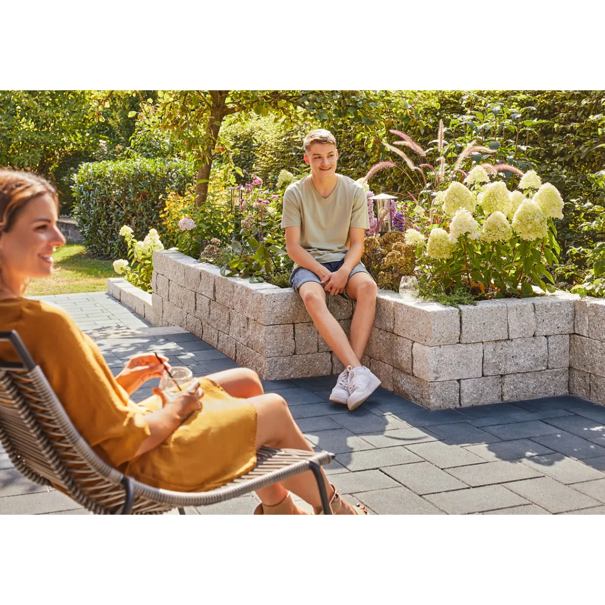 Verleihen Sie Ihrem Garten oder Ihrer Terrasse das gewisse Etwas! Der Mauerstein Natura 35x15x16 cm in der edlen Farbgebung Kristall-Granit ist nicht nur ein echter Hingucker, sondern überzeugt auch durch seine Robustheit. Mit seiner hochwertigen Beton-Ausführung und der vierseitigen Spaltung bringt er eine natürliche Optik in Ihre Außenbereiche. Ob als Stützwand, Lärmschutzwand oder für dekorative Mauern – dieser Stein vereint Funktionalität mit Ästhetik.