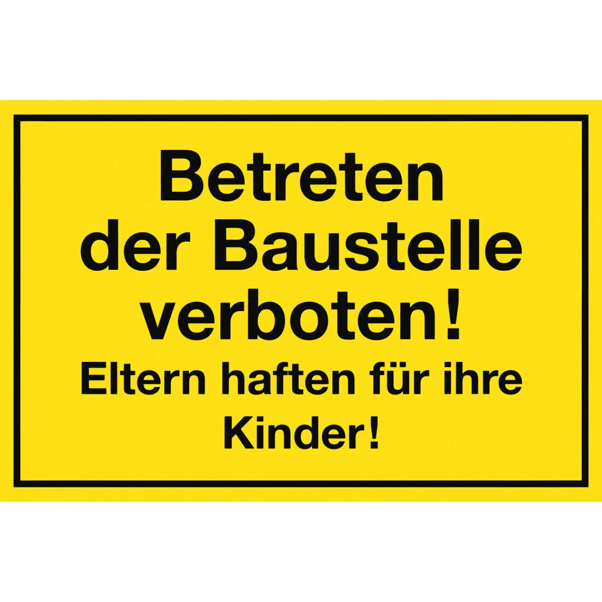 - – Abgebildeter Text: Betreten der Baustelle verboten! Eltern haften für Ihre Kinder!