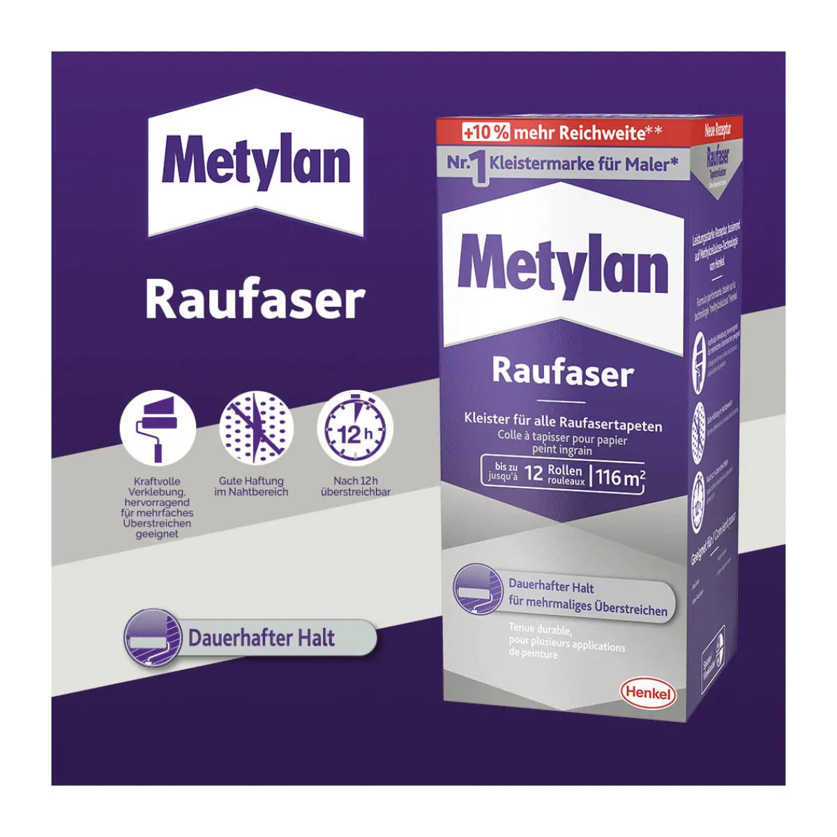 Mit dem Metylan Metylan Kleister Raufaser wird das Tapezieren zum Kinderspiel. Die hohe Klebkraft, starke Anfangshaftung sowie die Möglichkeit zur korrigierbaren Verarbeitung machen den Tapetenkleister besonders einfach in der Handhabung. Dank seiner Ergiebigkeit von ca. 116 m² pro Packung ist er zudem äußerst sparsam im Verbrauch und somit auch preislich attraktiv.