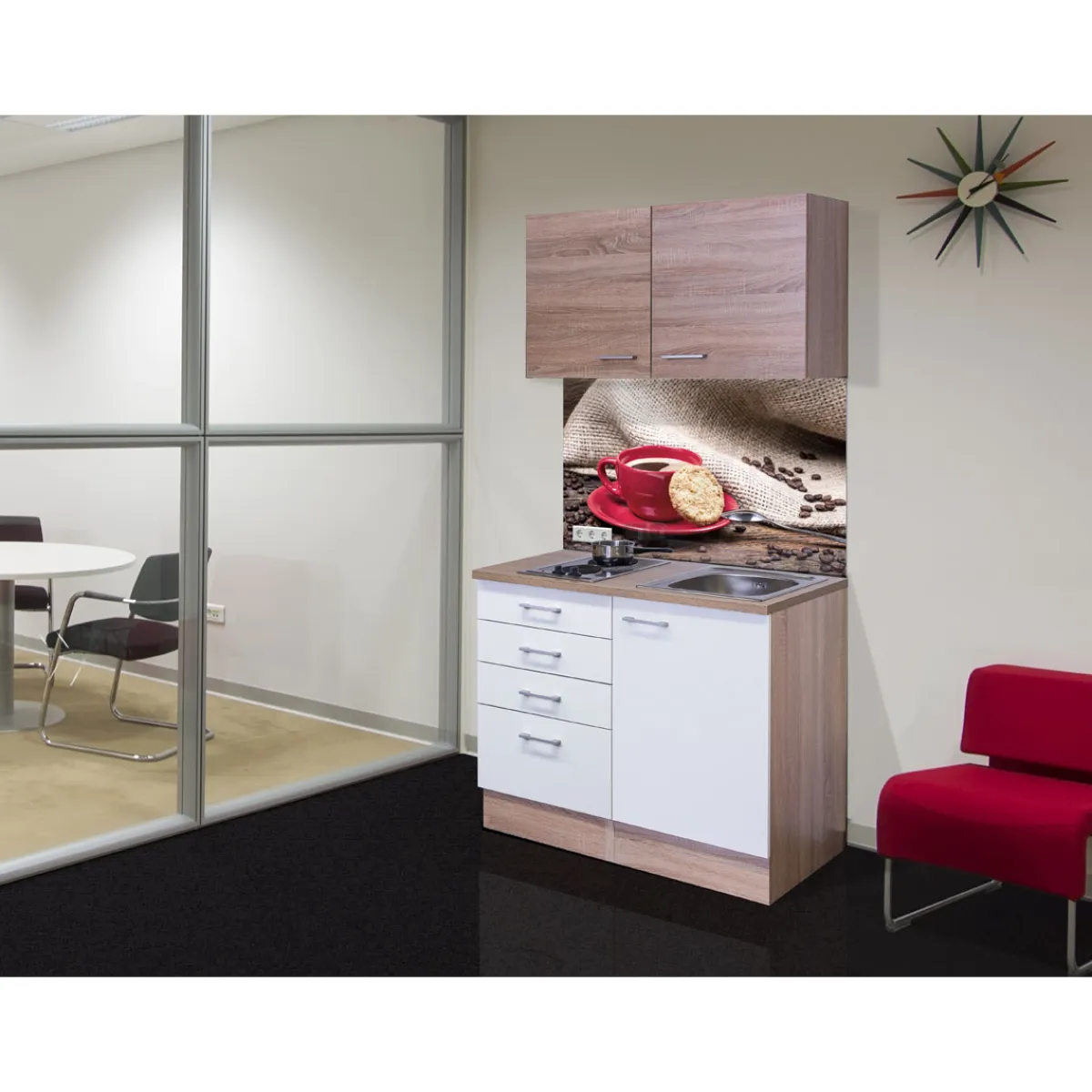 - Kompakte Maße mit einer Gesamtbreite von nur 100 cm – ideal für kleine Küchenräume.